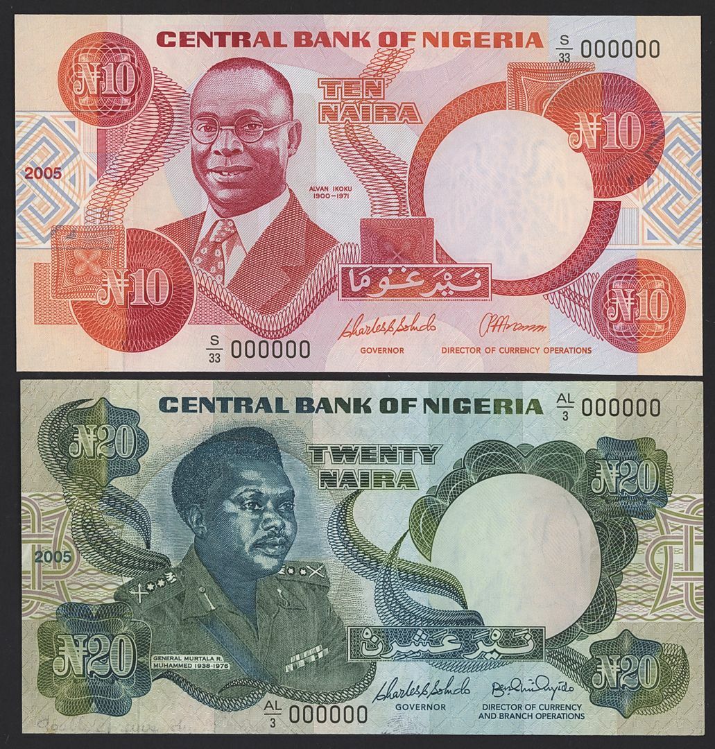 (x) Central Bank of Nigeria, [2 notes] proof 10, 20 Niara, 2005, (Pick 25, 26, BNB 223, 224), extremely fine to about uncirculated (2 notes)