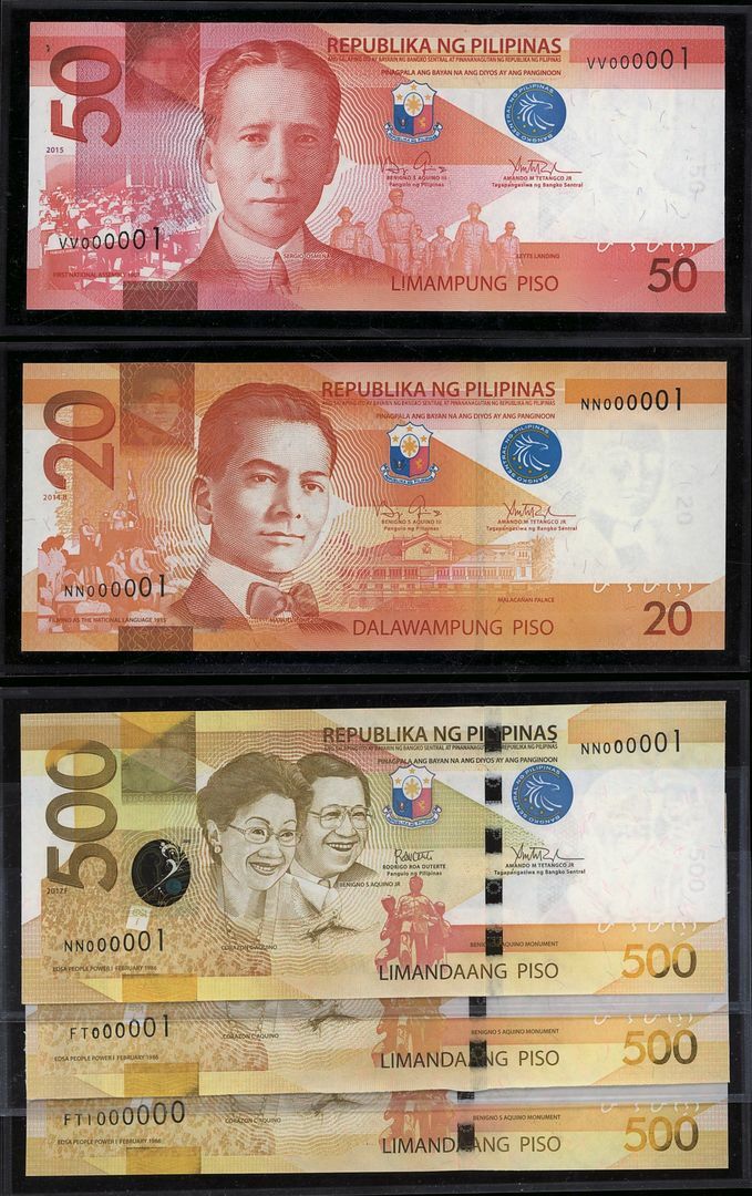 (x) Republic of the Philippines, [7 notes] 20, 50, 100, 500, 1000 Piso, 2014-2018,