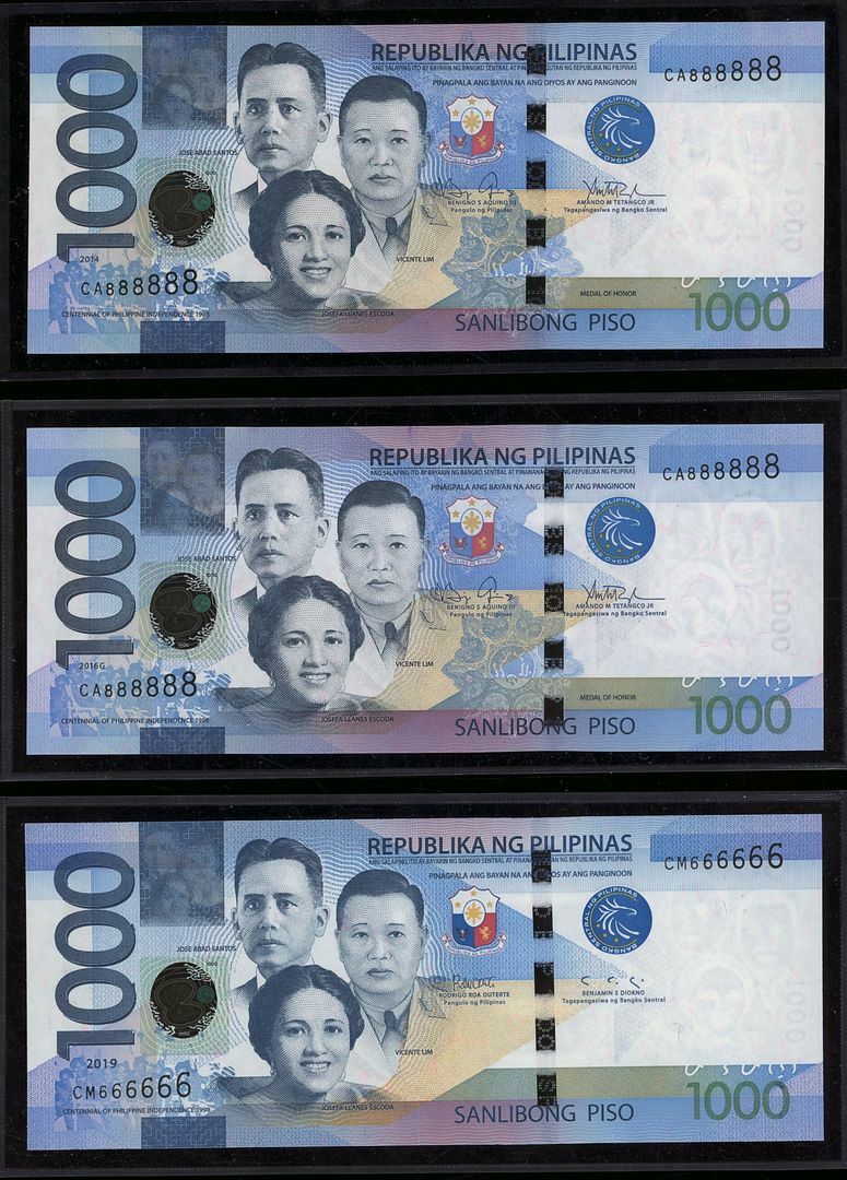 (x) Republic of the Philippines, [6 notes] 1000 Piso, 2014-2019,