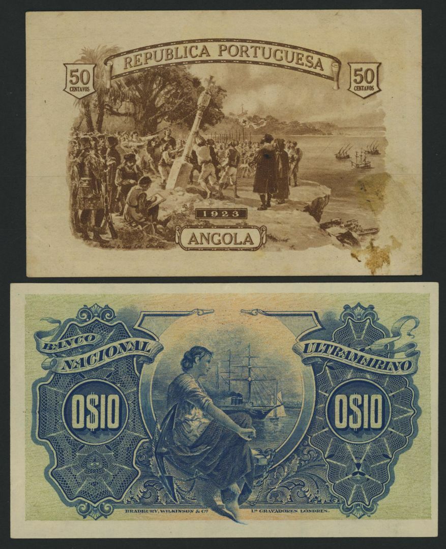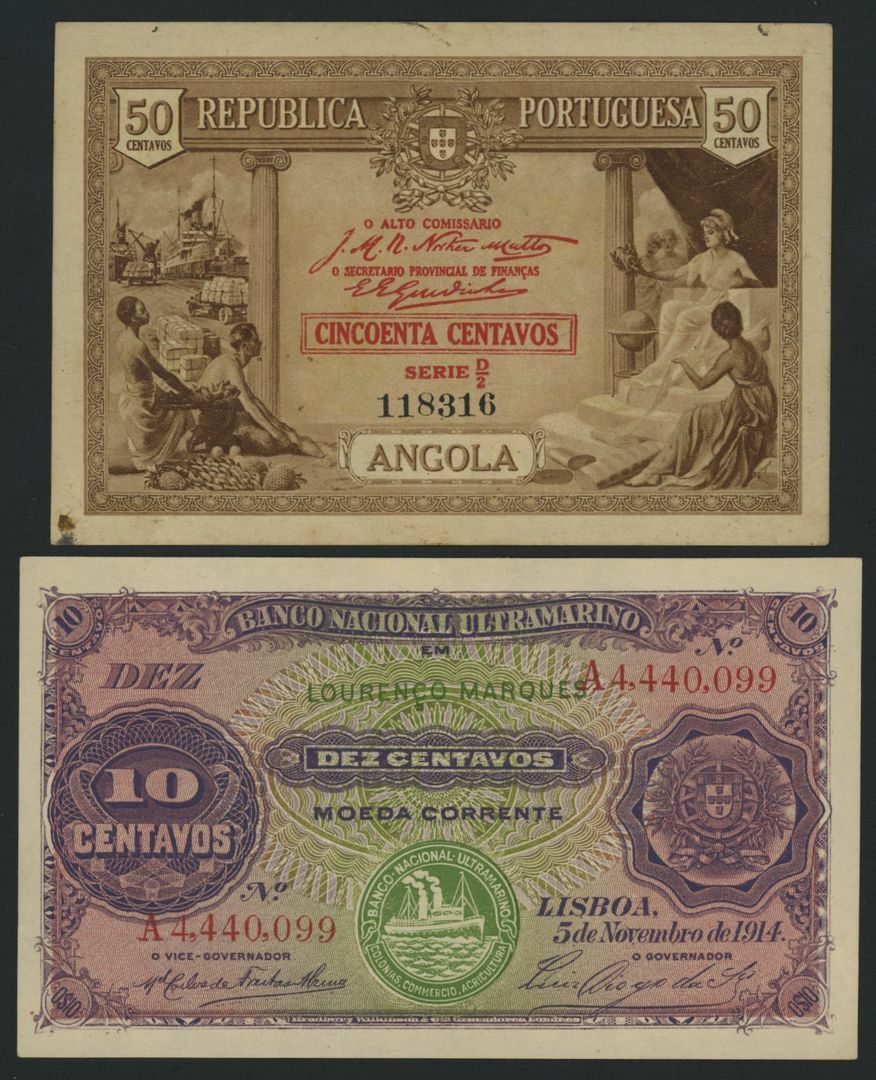 Portuguese Angola, Portuguese Mozambique, [2 notes] 10, 50 Centavos, 1914-23,