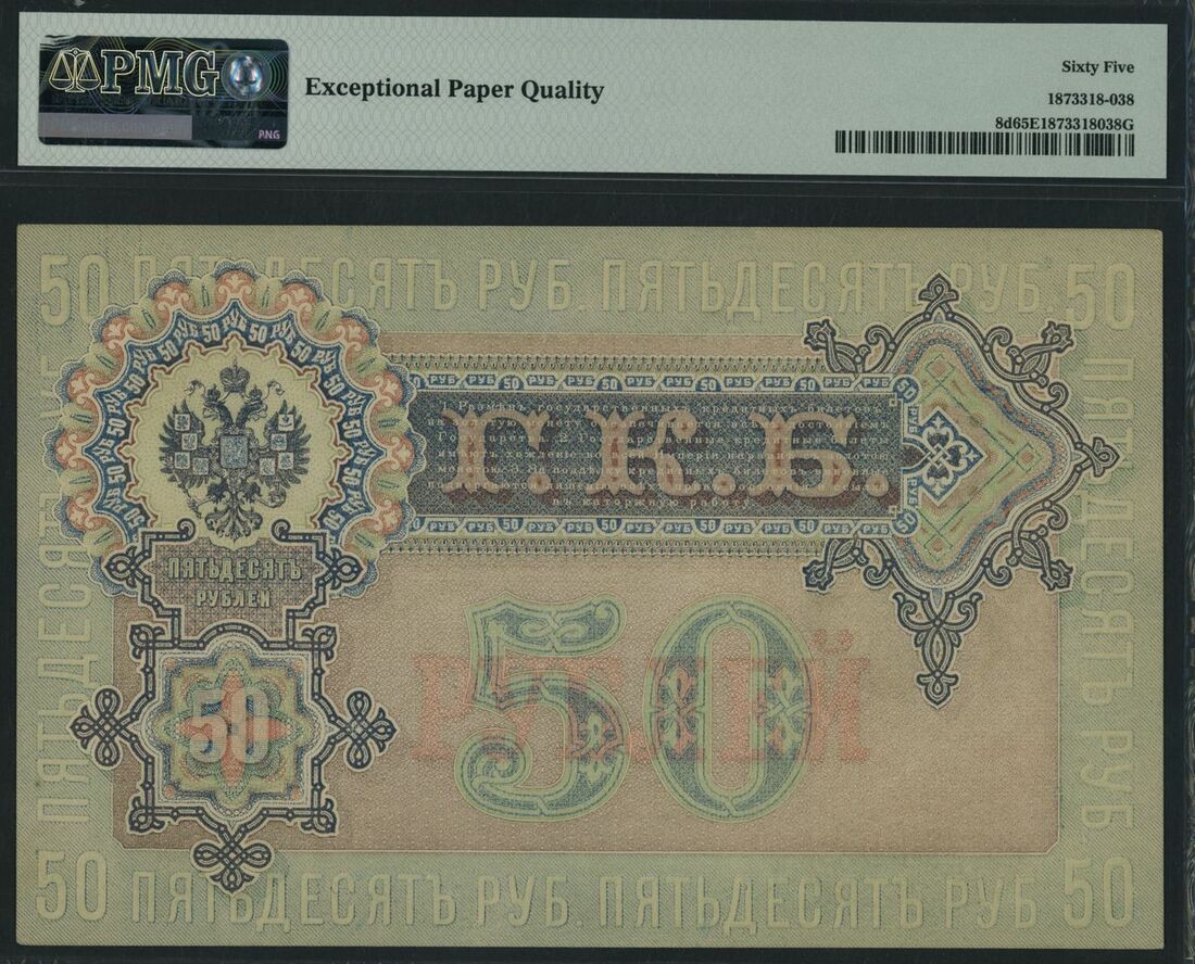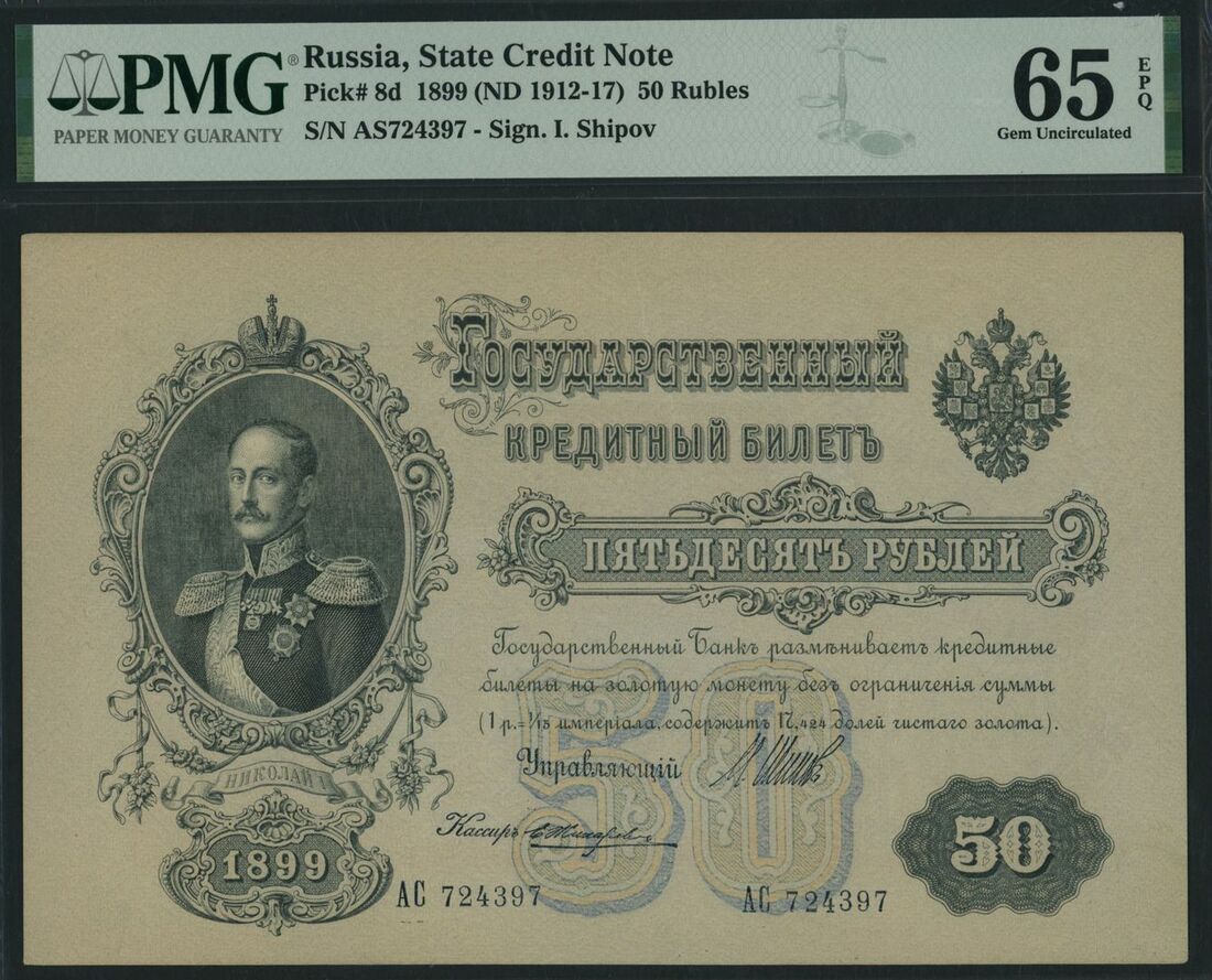 (x) State Credit Note, Russia, 50 Rubles, 1899 (ND 1912-17), serial number AS724397, (Pick 8d), in PMG holder 65 EPQ Gem Uncirculated