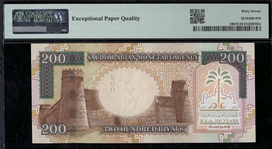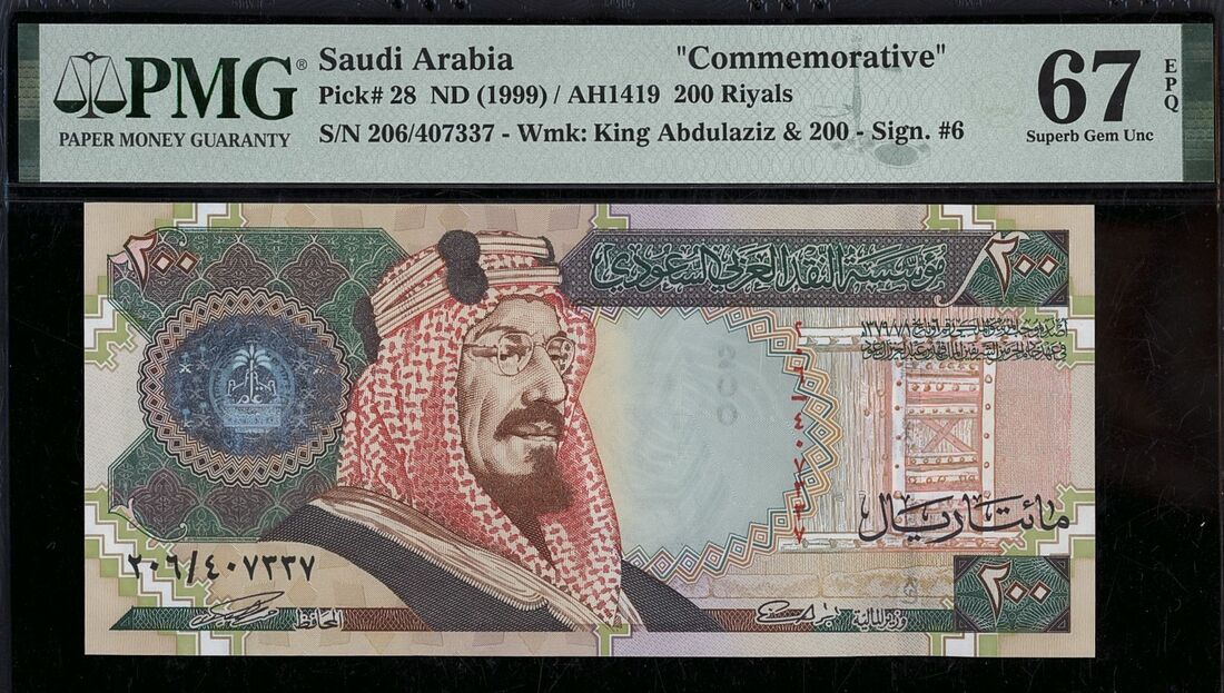 Saudi Arabian Monetary Authority, 200 Riyals, ND (1999), serial number 206/407337, (Pick 28), in PMG 67 EPQ Superb Gem Uncirculated