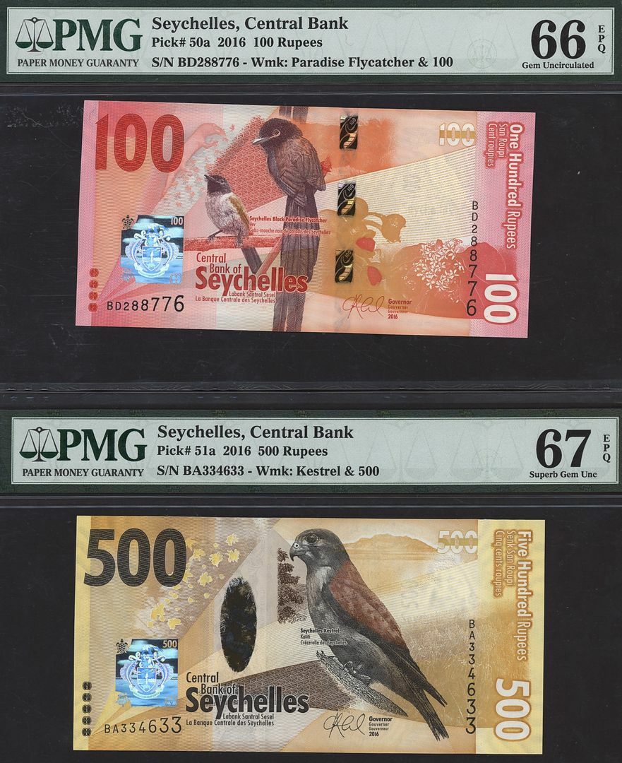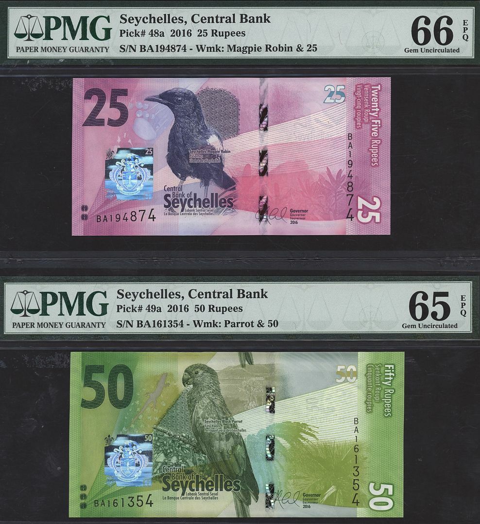 (x) Central Bank of Seychelles, [4 notes] 25, 50, 100, 500 Rupees, 2016,