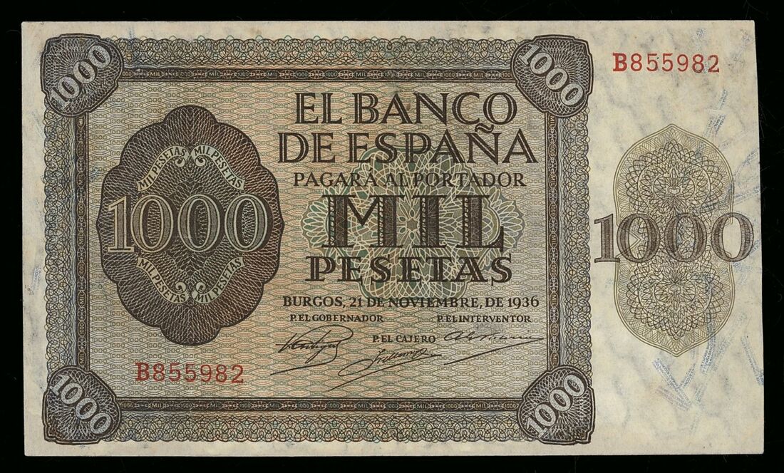 (x) Banco de España, Spain, 1000 Pesetas, Burgos, 21st November 1936 (1937), serial number B855982, (Pick 103, BNB 568),