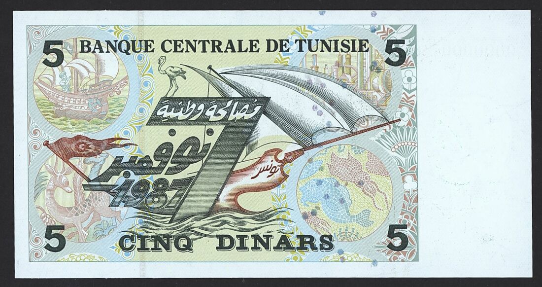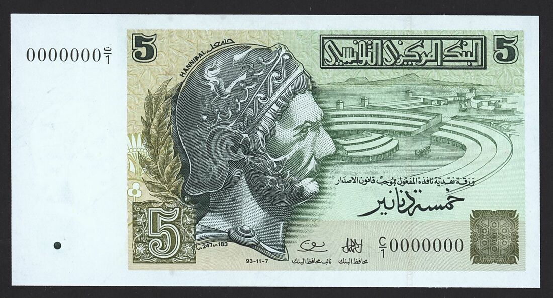 (x) Banque Centrale de Tunisie, proof 5 Dinars, ND (1992), serial number C/1 0000000, (Pick 86, BNB 525), uncirculated