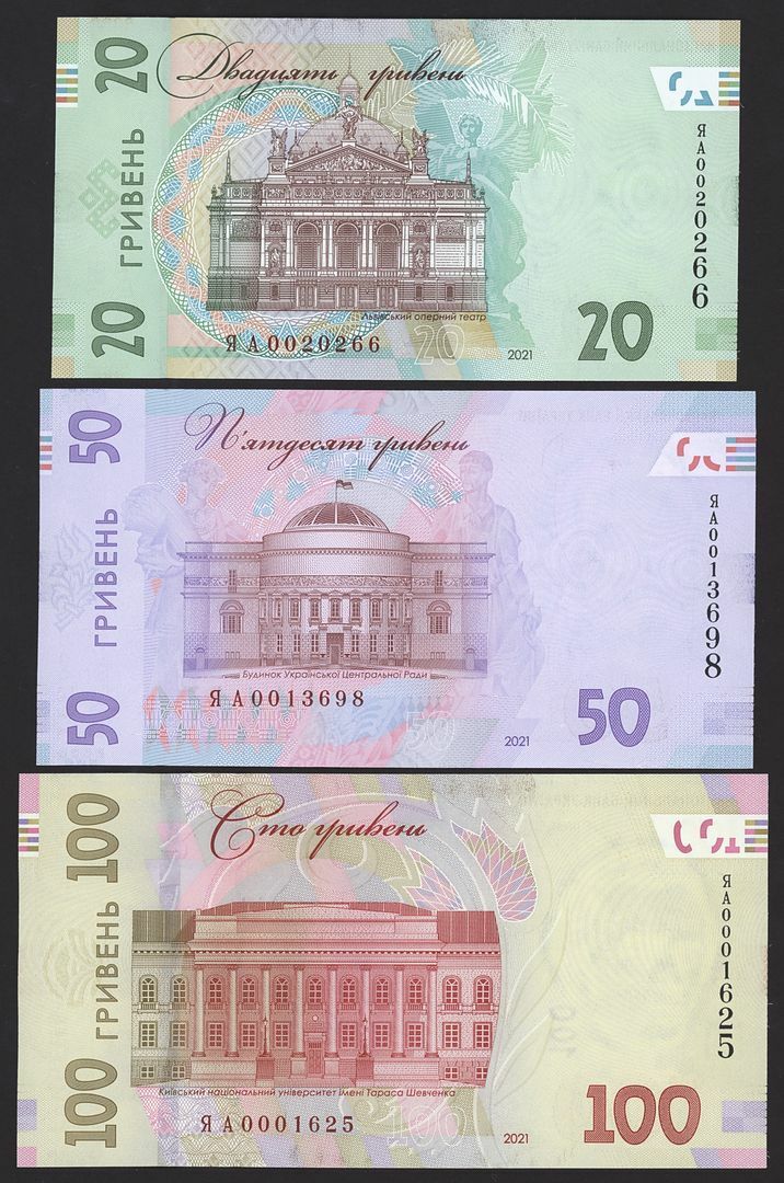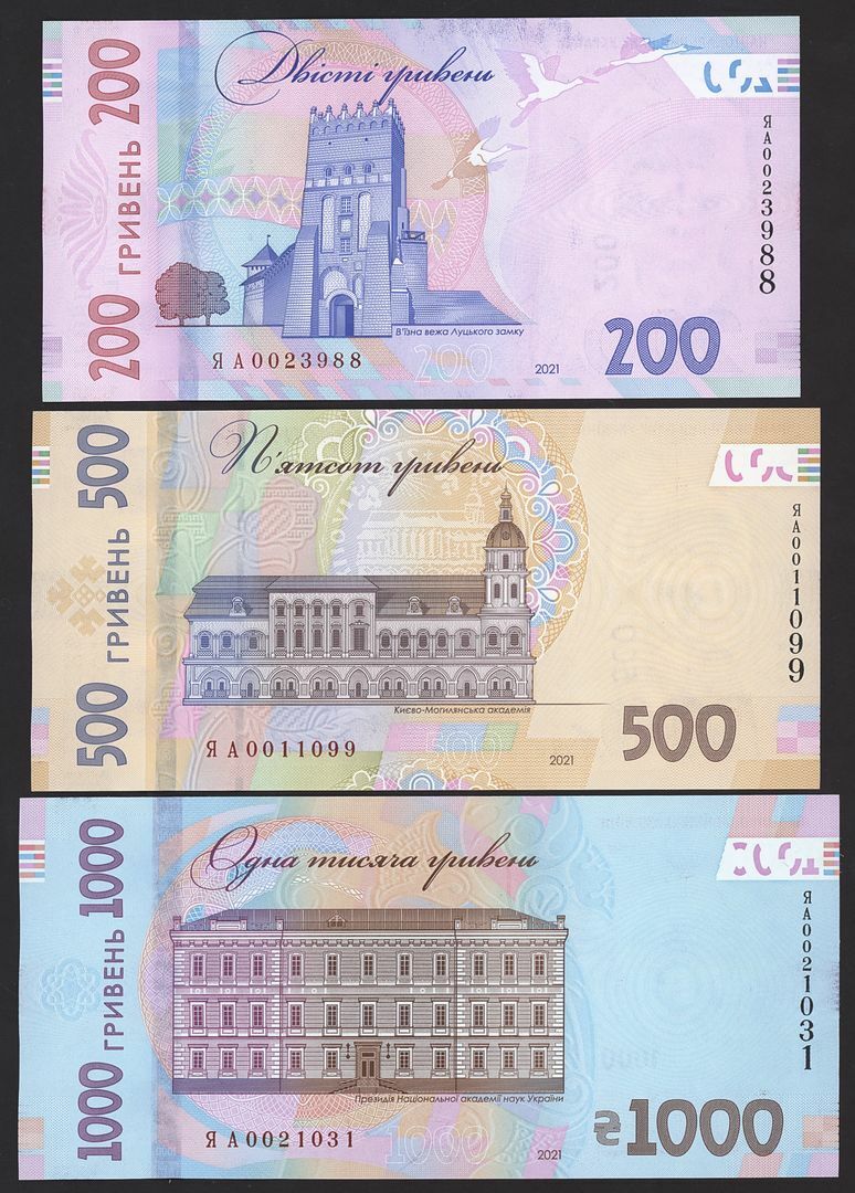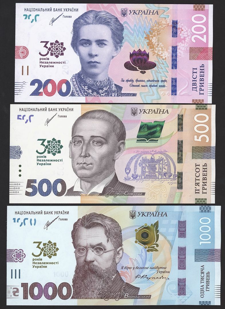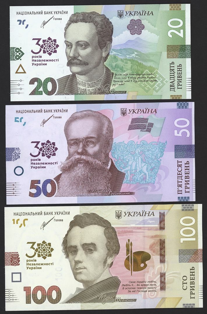 (x) National Bank of Ukraine, Commemorative Issues, [6 notes] 20, 50, 100, 200, 500, 1000 Hryven, 2021, notes to commemorate the 30th anniversary of Ukraine's independence
