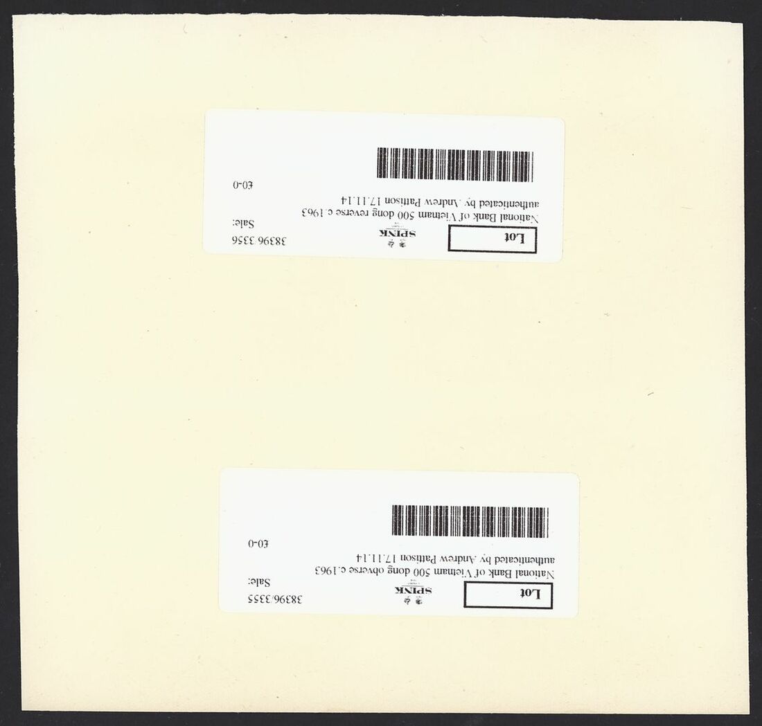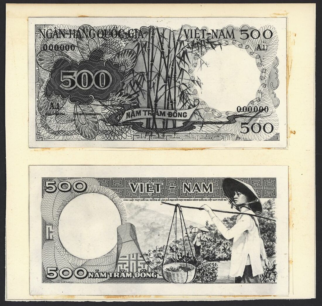 (x) National Bank of Vietnam, South Vietnam, [2 notes] obverse and reverse photo proof 500 Dong, ND (c.1963), unadopted design