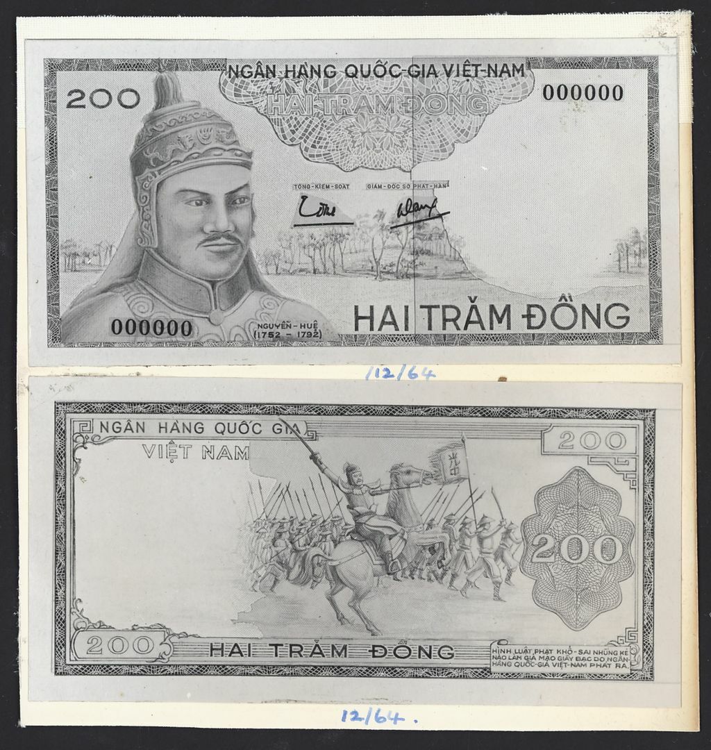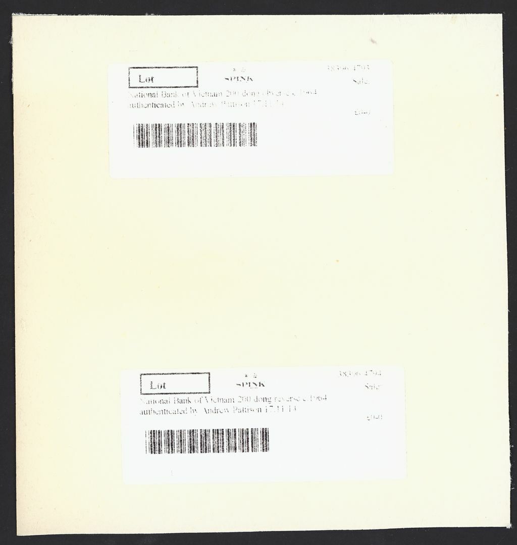 (x) National Bank of Vietnam, South Vietnam, [2 notes] obverse and reverse photo proof 200 Dong, December 1964, (Pick 20), mounted