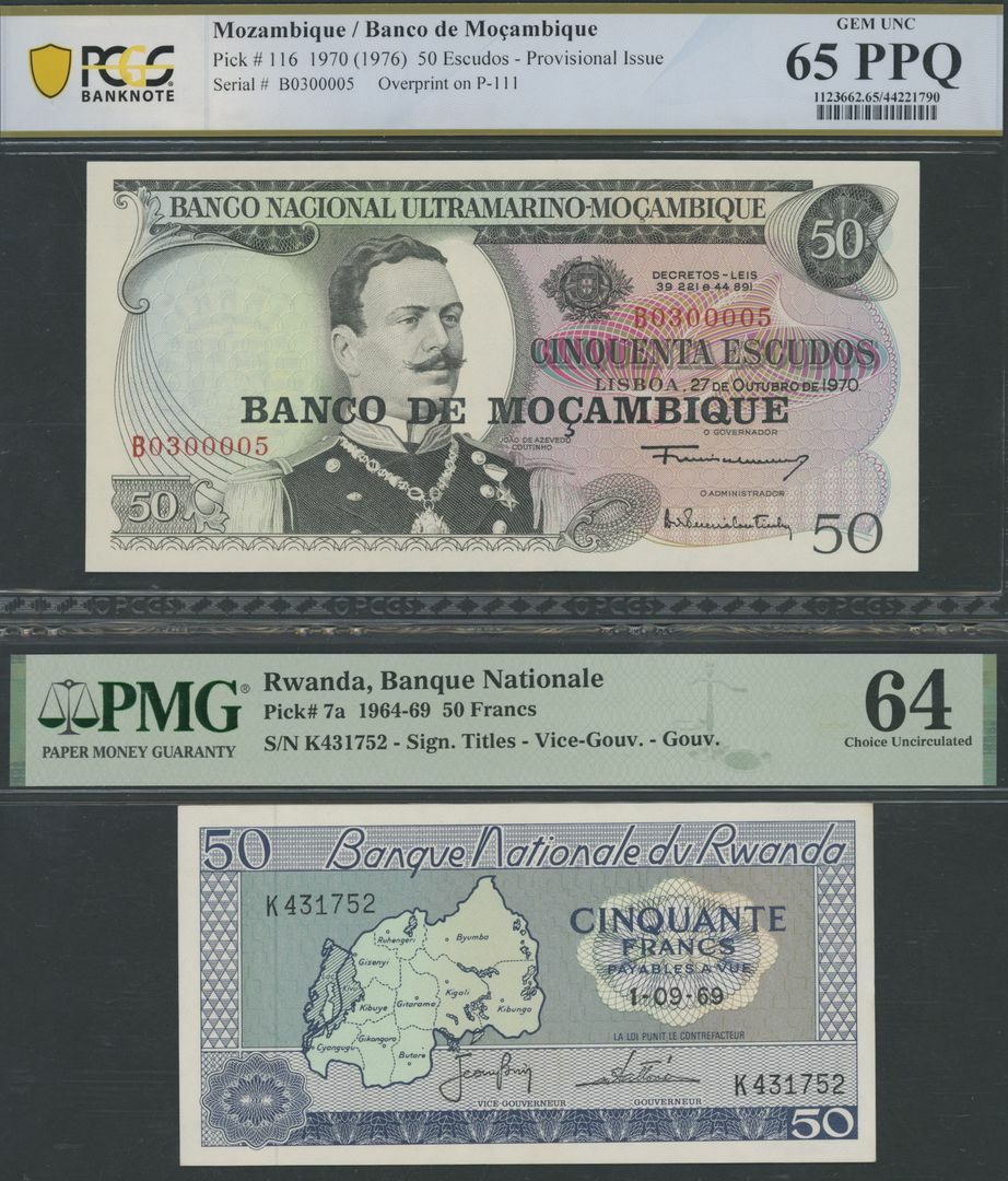 Mozambique (1), 50 Escudos, 1970, serial number B0300005;