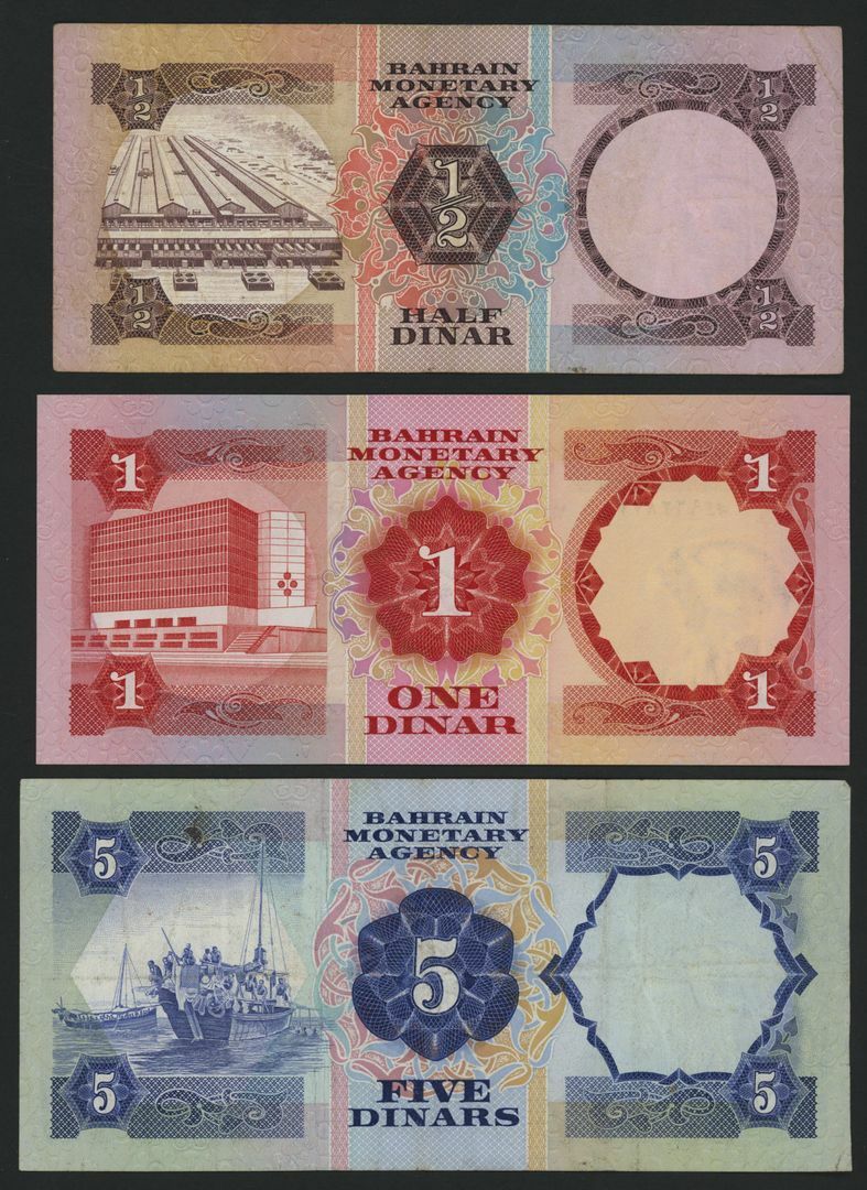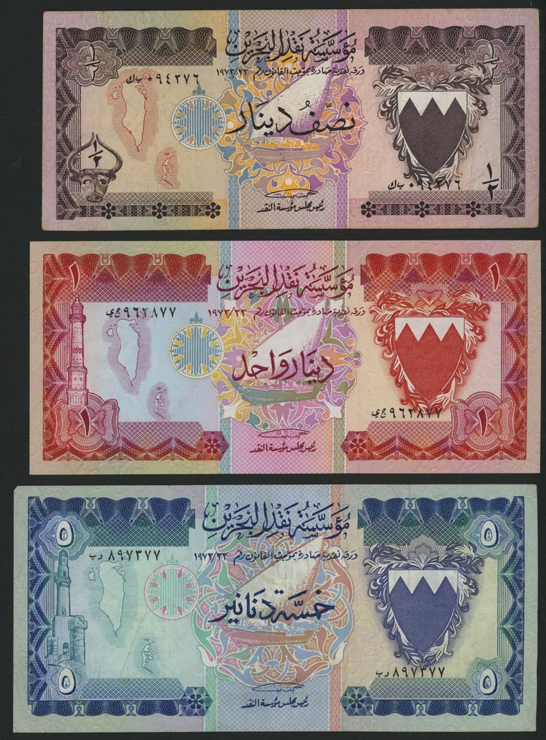 Bahrain (3) 1/2, 1, 5 Dinars