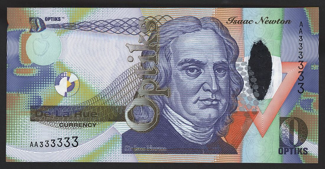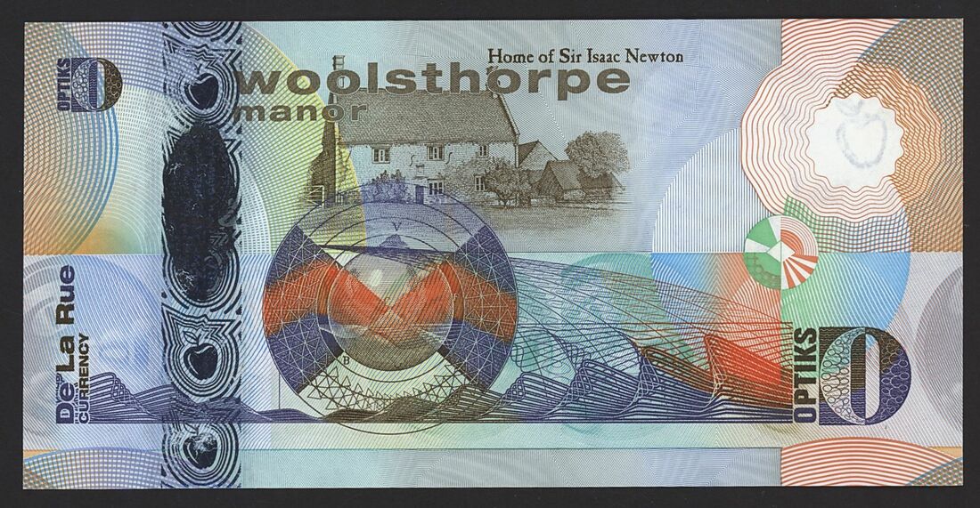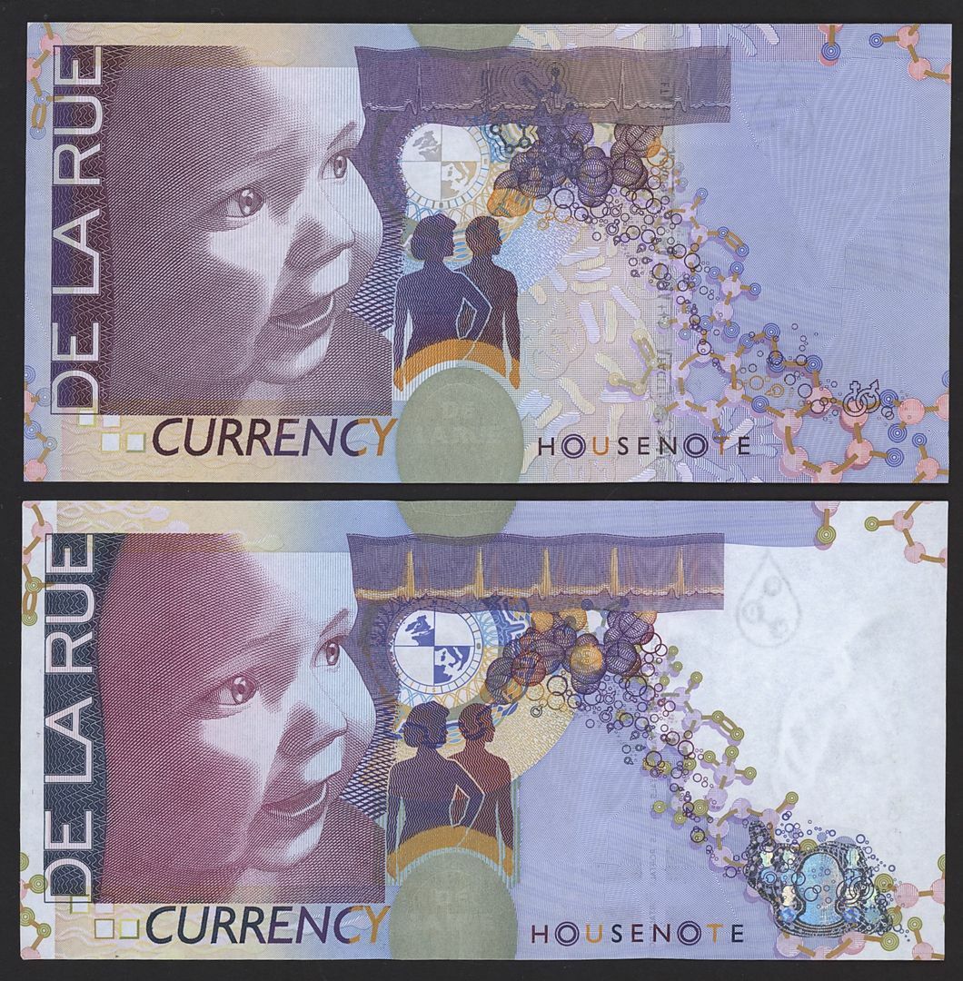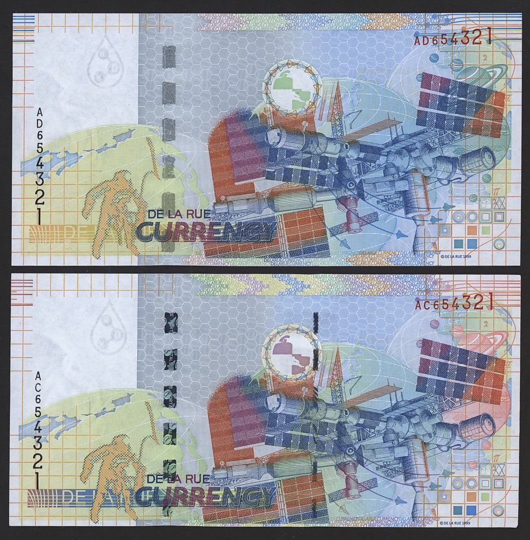 2 De La Rue Optiks test notes with promotional folders,