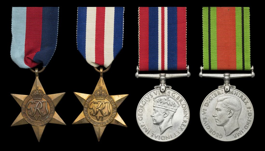 1939-1945 Star; France and Germany Star; Defence Medal; War Medal 1939-45, sold together with the addressed card box of issue with medal slip and ticker tape confirming the award of the four medals, extremely fine (4)