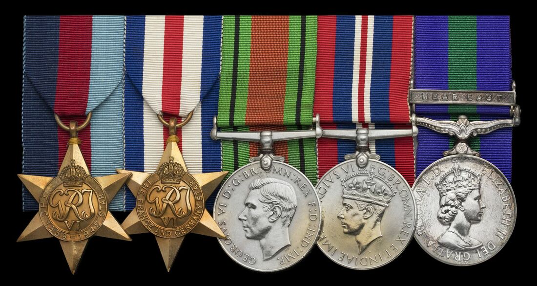 1939-1945 Star; France and Germany Star; Defence Medal; War Medal 1939-45; General Service 1918-62, 1 clasp, Near East (22517804 Fus. P. S. Jarrold. R.F.), mounted for display, very fine