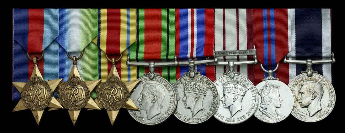 1939-45 Star; Atlantic Star; Africa Star; Defence and War Medals 1939-45; Naval General Service 1915-62, 1 clasp, Minesweeping 1945-51 (P/Kx.88194 L. P. C. F. Sexton. P.O.S.M. R.N.); Coronation 1953; Royal Navy L.S. & G.C., G.VI.R. (P/Kx.88194 L. P. C. F. Sexton. P.O.S.M. H.M.S. Pembroke.), mounted court-style, very fine (8)
