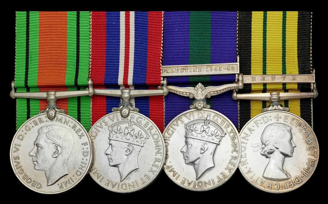 Defence Medal; War Medal 1939-45; General Service 1918-62, 1 clasp, Palestine 1945-48 (3866309 Bdsmn, S. Jopson. Loyals.); Africa General Service 1902-56, 1 clasp, Kenya (Chief Officer S. Jopson.), rank officially corrected on the last, light contact marks otherwise very fine overall (4)