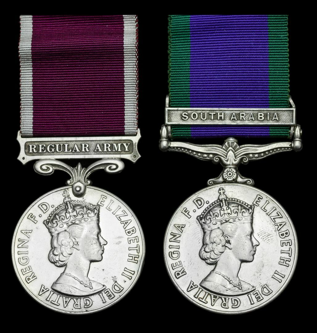 General Service 1962-2007, 1 clasp, South Arabia (22128739 W.O.CL.2. M. C. Fisher. RA.); Army L.S. & G.C., E.II.R. (22128739 W.O.CL.2. M. C. Fisher. RA.), edge bruises to both medals, otherwise lightly polished very fine (2)