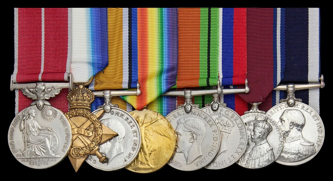 A 1945 B.E.M. group of eight awarded to Chief Petty Officer H. Watson, Royal Navy, a veteran of the Battle of Jutland, who was serving with Furious when Squadron Commander Dunning landed upon her while underway, becoming the first man to land an aircraft upon a moving vessel