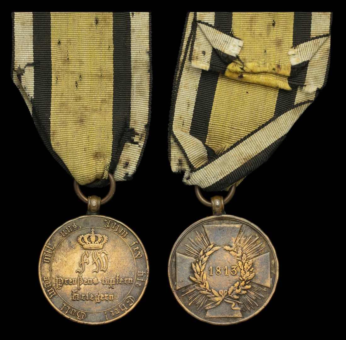 Germany, Prussia, Combatants Medal, for 1813, bronze, on its original silk riband, lightly polished, good fine and better