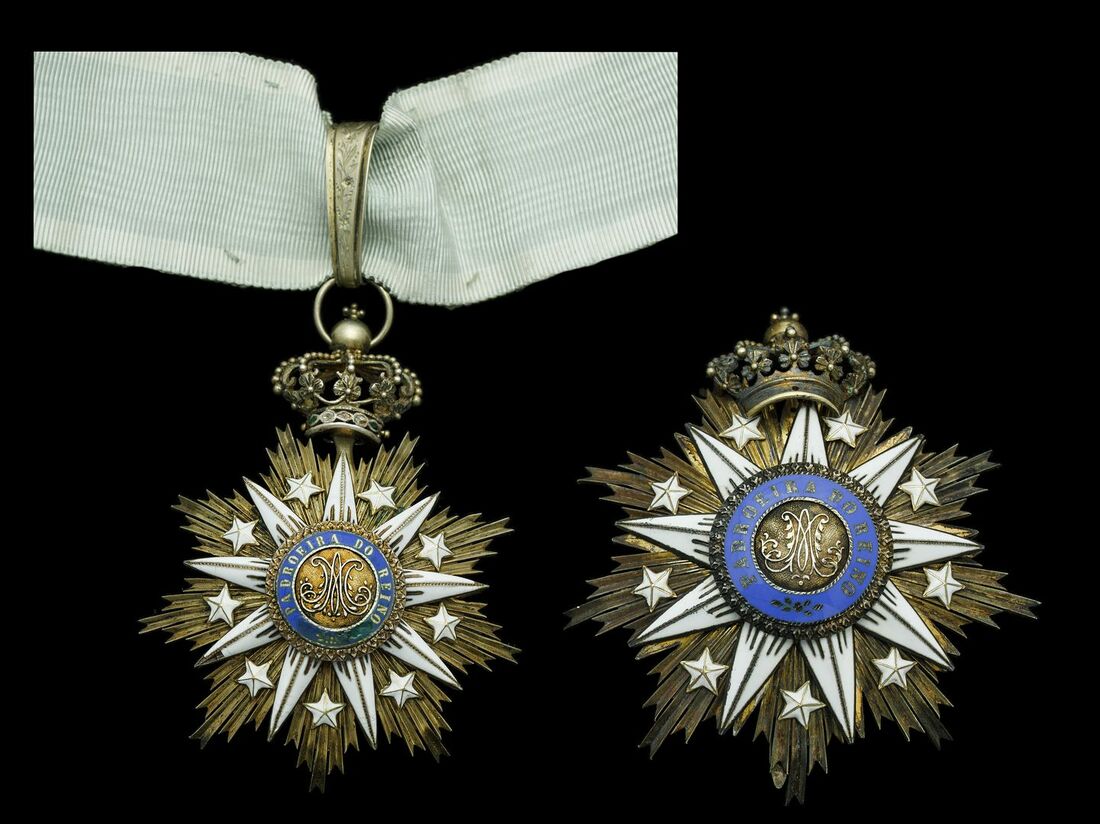 (x) Portugal, Kingdom, Order of Vila Viçosa, Grand Commander's set of Insignia, by Da Costa, Lisbon, comprising neck Badge, 85mm including crown suspension x 63mm, silver-gilt and enamel, maker's cartouche to reverse; Star, 84mm including crown x 76mm, silver-gilt and enamel, maker's cartouche to reverse, centre rather loose to first, crown rather loose on Star, thus fine, with section of neck riband (2)