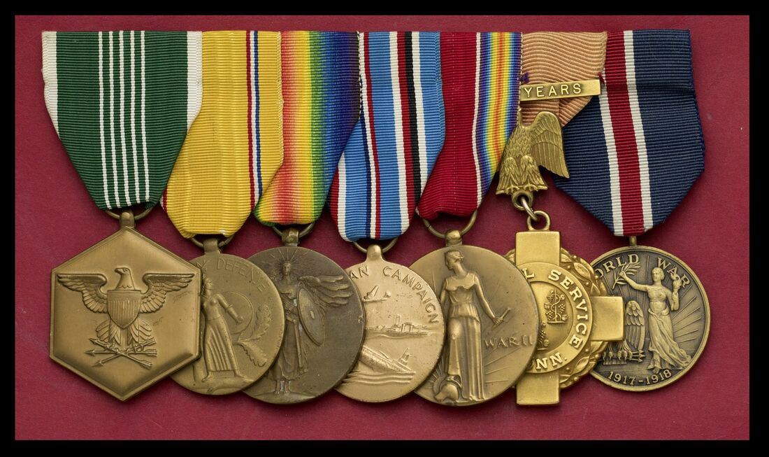 United States of America, Army Commendation Medal; American Defense Service Medal WW2; Victory Medal WW1; American Campaign Medal; Victory Medal WW2; Connecticut Long Service Medal, 1 clasp, Thirty Years (Brigadier General William B. Smith) engraved; World War 1917-1918 Service medal for the State of Connecticut, mounted as worn, good very fine (7)