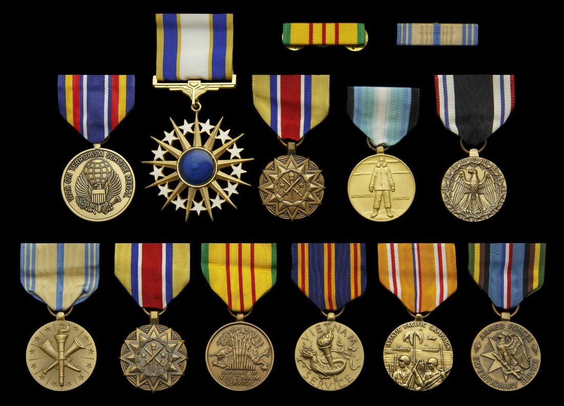 United States of America (11), Air Force Distinguished Service Medal; National Guard Achievement Medal; Asiatic Pacific Campaign Medal; Prisoner of War Medal; Vietnam Service Medal; Vietnam Civilian Service Medal; Expeditionary Force Medal; Army Reserve Medal; Armed Forces Reserve Medal; Antarctica Service Medal; War on Terrorism Medal, generally very fine (11)
