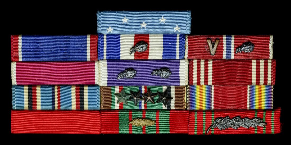 A representative uniform riband bar representing the awards of Major Audie Murphy, United States Army, the most decorated Soldier of WW2