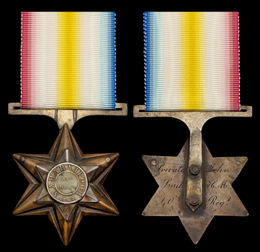 (x) Gwalior Star 1843, Maharajpoor centre (Private John Smith 40th Regt), fitted with replacement white metal straight bar suspension, two points of the star appear to have been drilled and filled possibly for a different style of mounting, otherwise very fine