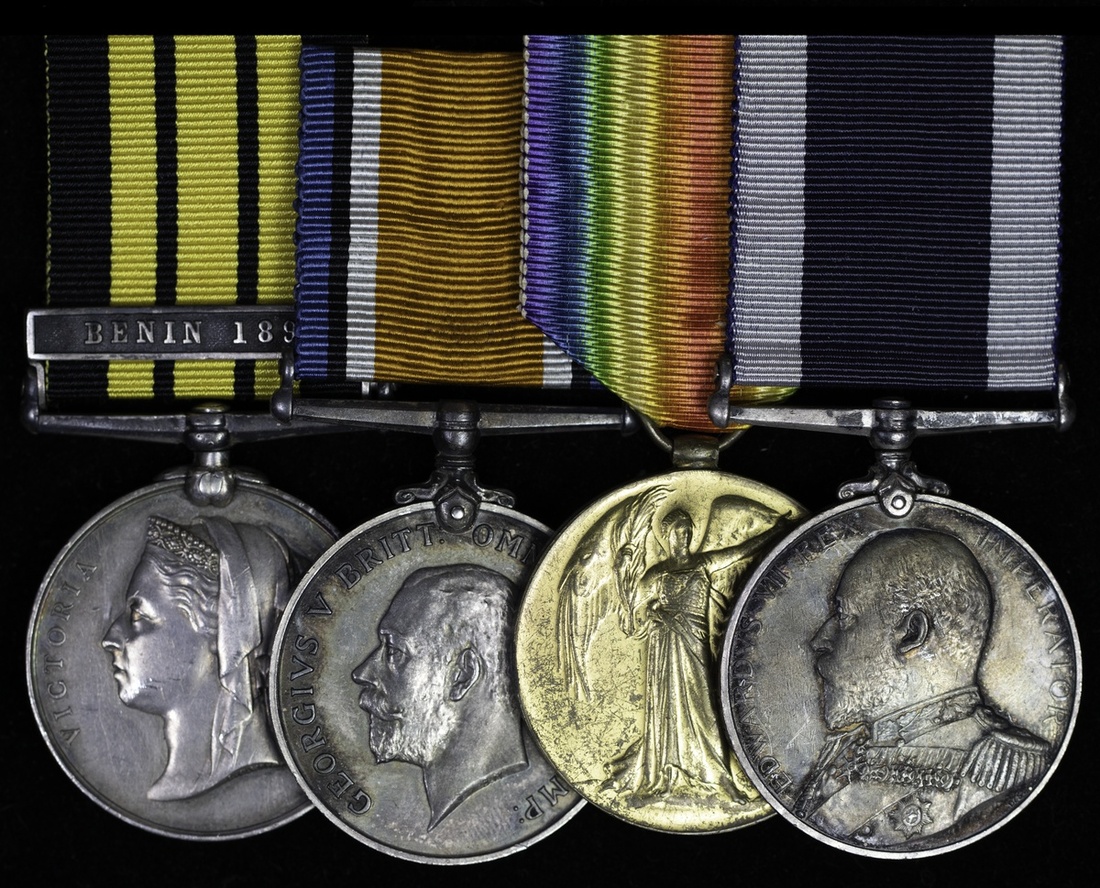 East and West Africa 1887-1900, 1 clasp, Benin 1897 (R. C. Gentry, LG. Sean., H.M.S. Theseus.); British War and Victory Medals (168991. R. C. Gentry. C.P.O. R.N.); Royal Navy L.S. & G.C., E.VII.R. (168991 R. C. Gentry, C.P.O., H.M.S. Pembroke.), central letter of rank restruck on War Medal, light contact marks, very fine (4)