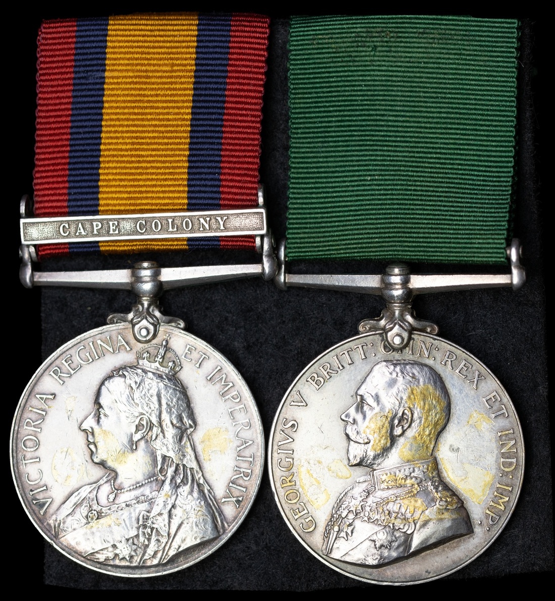 Queen's South Africa 1899-1902, 1 clasp, Cape Colony (405 Gnr: T. J. Meezer. Cape G.A.); Colonial Auxiliary Forces Long Service Medal, G.V.R. (No 405 Gr T. J. Meeser C. G. Arty.), engraved naming, light contact marks, very fine (2)