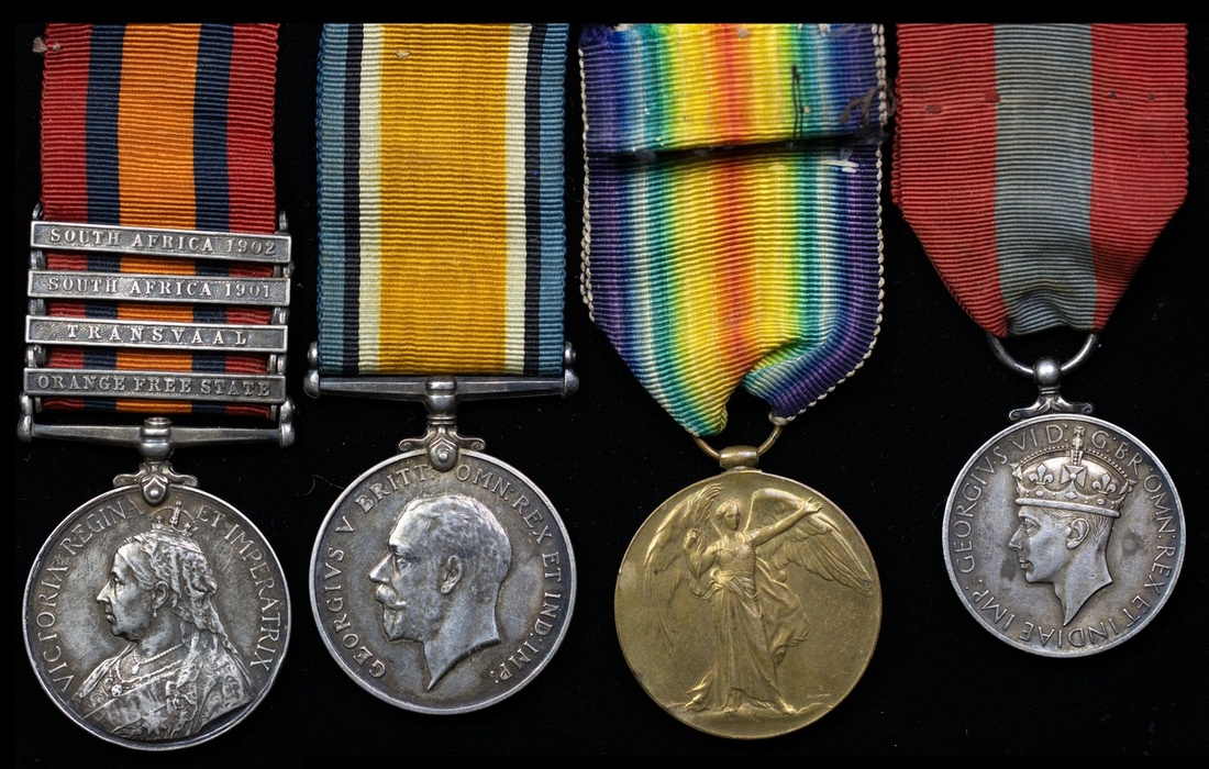 Queen's South Africa 1899-1902, 4 clasps, Orange Free State, Transvaal, South Africa 1901, South Africa 1902 (5088 Pte. H. E. Strover. 8th Hussars); British War and Victory Medals (5088 Pte. H. E. Strover. 8-Hrs.); Imperial Service Medal, G.VI.R. (Herbert Edward Strover), very fine (4)