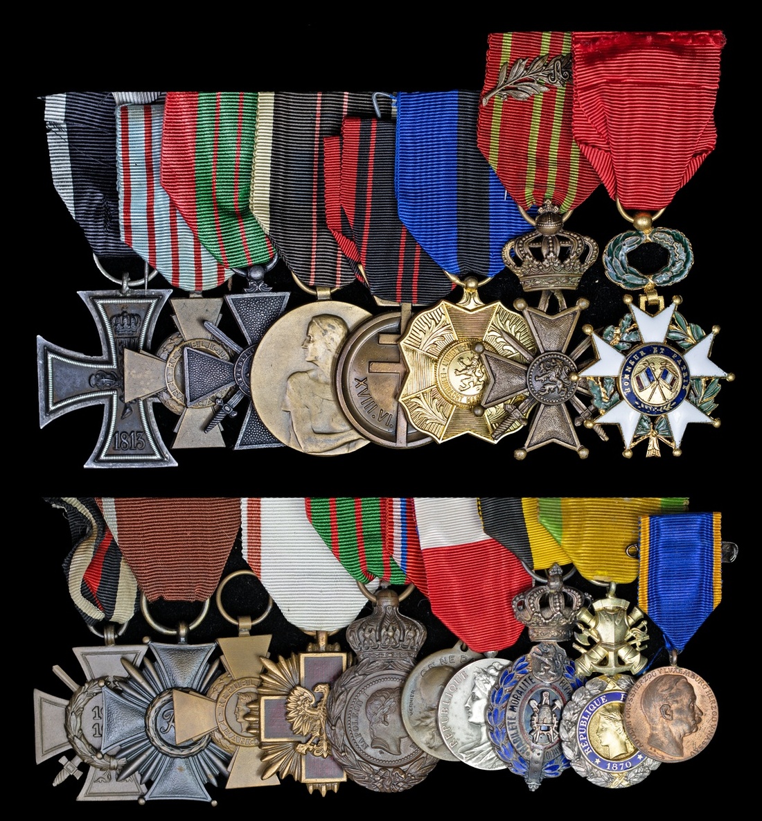 Belgium, Kingdom, Croix de Guerre, with Palme upon riband; Order of Labour and Industry; Order of Leopold II, gilt Medal; Resitance Medal; France, Republic, Legion of Honour, gilt and enamel; Medaille Militarie; Cross of Valour (2); St Helena Medal; Resistance Medal; Ministry of Social Affairs Medal, silver, named 'G. Pinte 1971' to reverse; Croix de Guerre, copy; Verdun Medal, copy; Germany, Iron Cross 1914; Hindenburg Cross; Luxembourg, Grand Duchy, 1909 Grand Duke Adolphe Medal, by Alois Borsch, bronze, mounted as worn and in envelope of issue; Poland, Republic, Cross of Merit; Merit Medal, both late strikings, very fine (18)