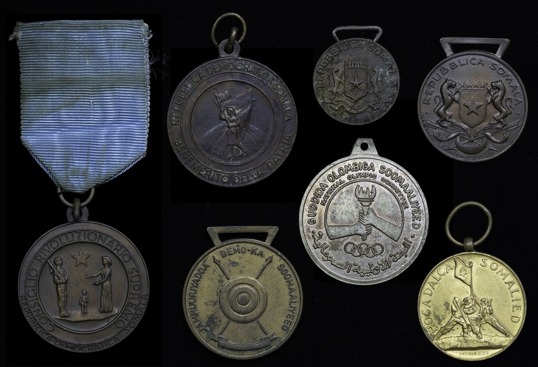 Somalia, Democratic Republic (1969-91), Supreme Revolutionary Council Medal, on riband; Meritorious Service Medal; Bravery Medal; Somali Olympic Committee Medal, all bronzed, very fine overall (4)