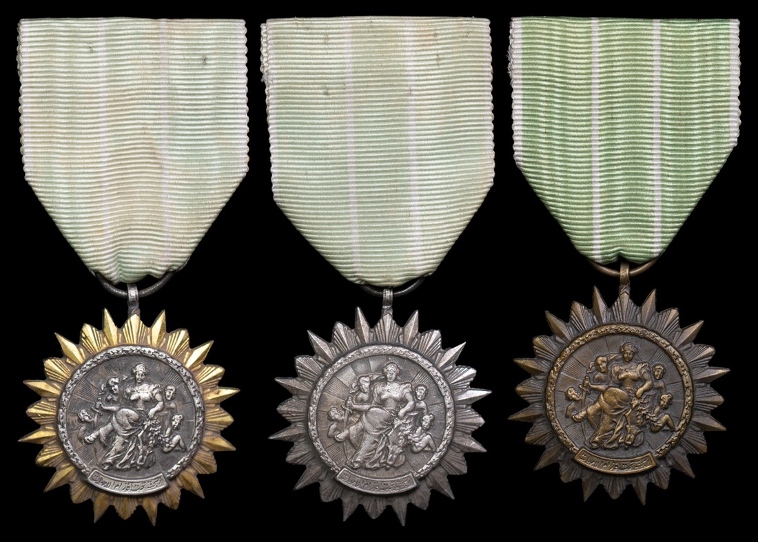 Syria, Order of the Syrian Family, 3rd Class breast Badge, white metal and silver-gilt; 4th Class, white metal; 5th Class, bronze, very fine, scarce (3)