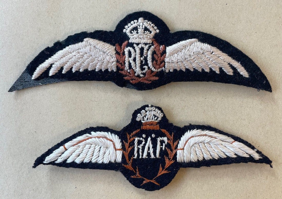 Royal Flying Corps Wings, with cloth backing; Royal Air Force Wings, cloth with paper backing and four popper studs as worn, very fine (2)