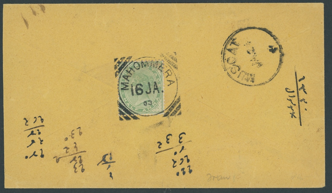 1903 (16 Jan.) envelope from Mohammera to Muscat franked on the reverse with ½a. cancelled by very neat