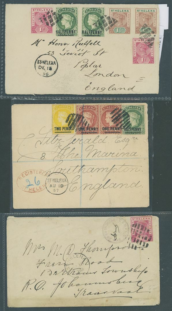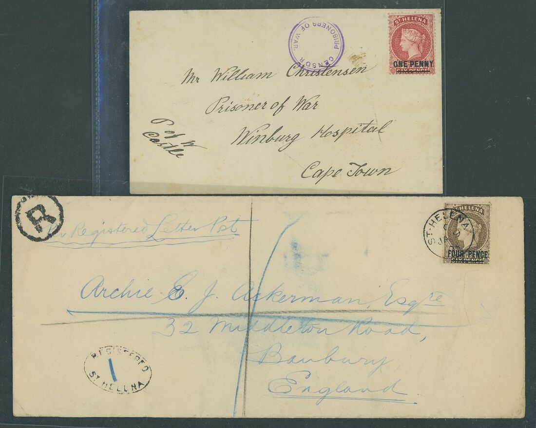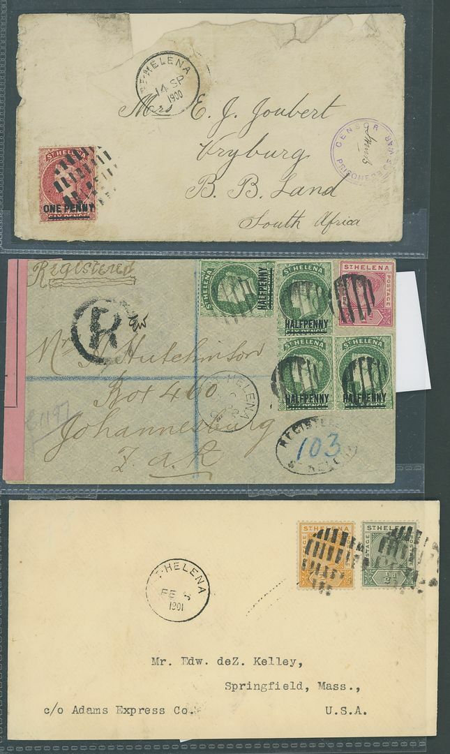 1896-1949, selection of twenty covers or cards, including 1896 front to England franked 1884-94 ½d. (2), 1890-97 1d. (2), 1½d. (2) with lozenge cancellations, 1897 cover Registered to Southampton franked 1884-94 ½d., 1d. (2) and 2d., 1900 Censored cover to Transvaal franked 1d., 1901 Censored and Registered cover to Johannesburg franked ½d. (4) and 1d., 1901 Censored cover to Transvaal with "