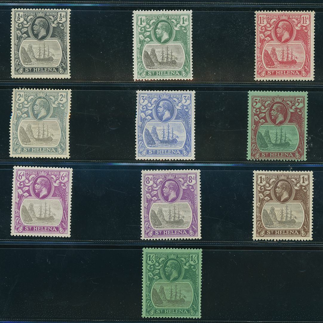 ½d., 1d., 1½d., 2d., 3d., 5d., 6d., 8d., 1/-, 1/6 and 2/- (Control pair), all showing the [R5/1] "Cleft Rock" variety, large part original gum; chiefly fine. S.G. £2,695