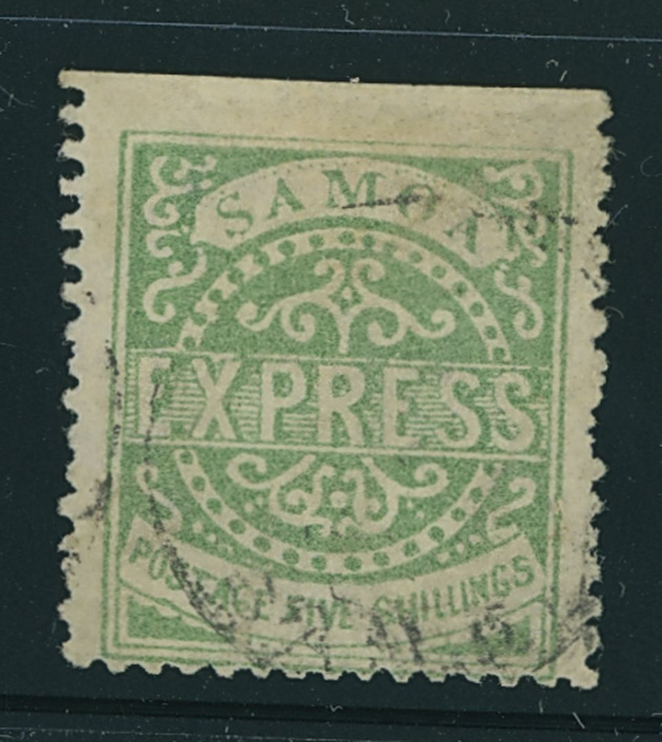1877-80, third State, perf. 12½ 5/- green, position [4], used, necessary straight edge at top, a few shortish perfs., handstamp on reverse, fine and scarce. B.P.A. Certificate (2023), S.G. 14, £850