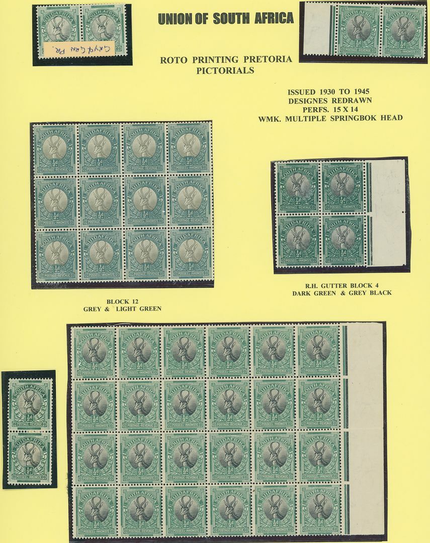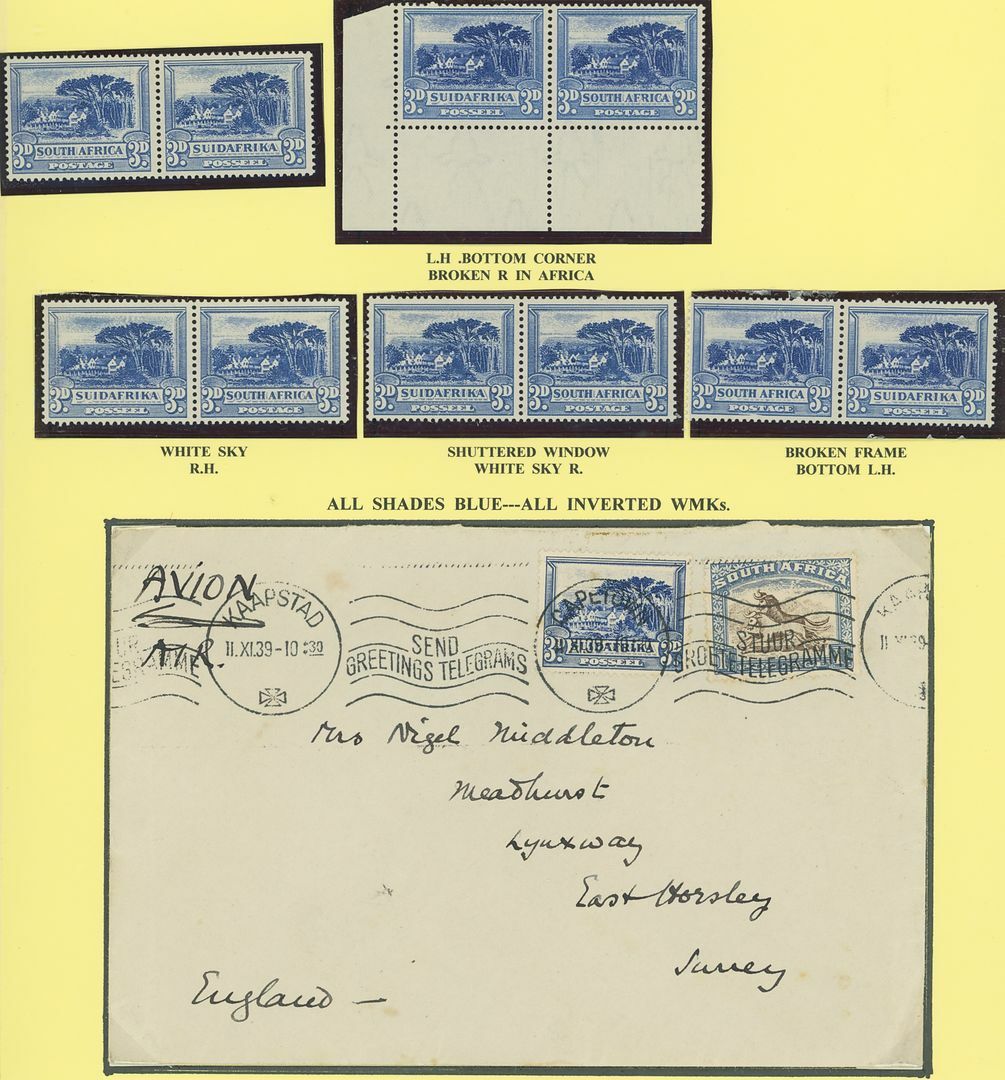 1930-44 unhyphenated, a specialised mint and used collection with values to 6d., well presented on pages with large multiples and plate flaws including ½d. dollar variety as part of block of four, vertical pair with vignette offset on reverse, mint and used, inverted watermark varieties in blocks, 2d. blue and violet pairs, one with balloon variety, with same included in block of four and inverted watermark multiples, 3d. mint pairs (2) and vertical strip of three, used pairs (3), 4d. brown (shades) in multiples. Generally fine, well worth viewing.