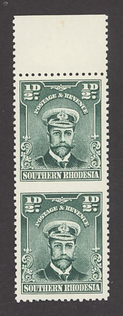 1924-29 ½d. blue-green, vertical pair from the top of the sheet, variety imperforate between; fine unmounted mint. S.G. 1b, £1,200