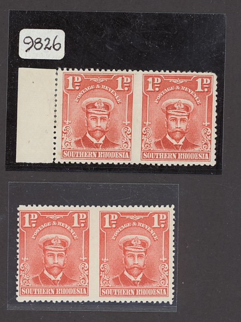 1924-29 1d. bright rose, horizontal pair variety imperforate between; also a further bright rose pair from the left of the sheet showing virtually imperforate between with traces of blind perfs in a couple of places; the latter with pressed diagonal crease. S.G. 2a, 2a var.