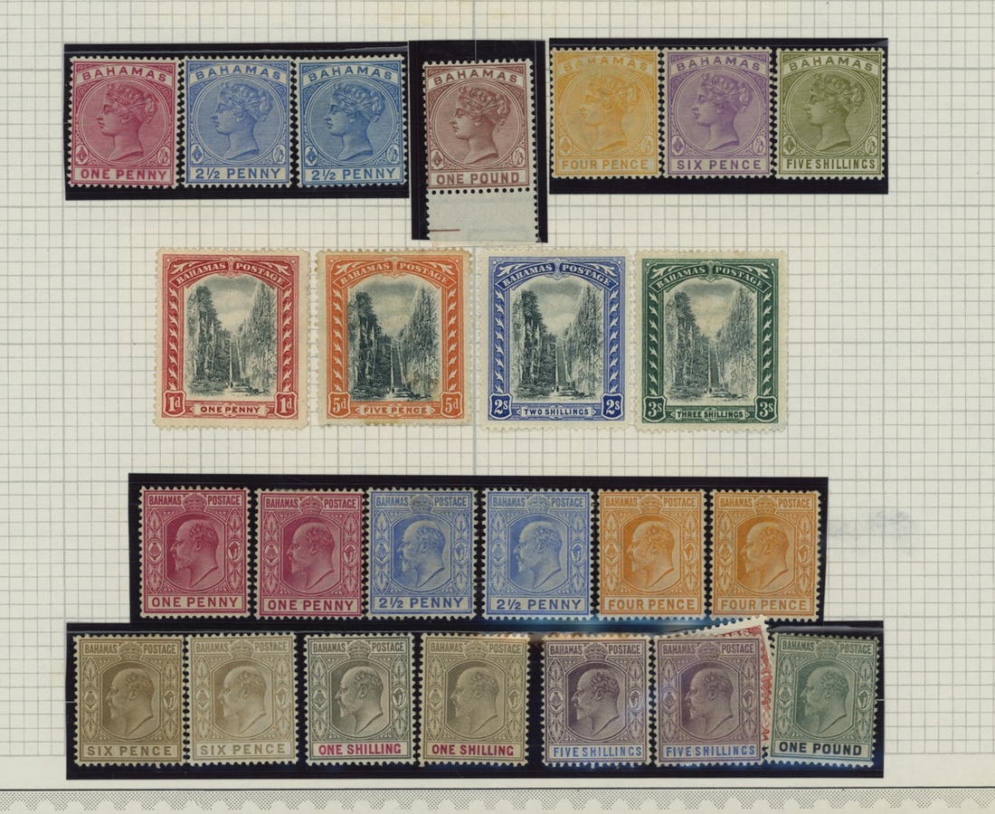 1884-1964 mint collection including 1884-90 1d. to £1 (marginal), 1901-04 Staircase 1d. to 3/-, 1902-07 CA 1d. to £1, 1906-11 MCA ½d. to 6d., 1911-19 Staircase 1d. to 3/-, 1912-19 MCA ½d. to 5/-, 1921-29 Staircase 1d. to 3/-, 1921-27 Script ½d. to £1 (brown gum), 1930 Tercentenary set, 1938-52 ½d. to £1 plus ½d. to £1 less 2/- in top right corner imprint blocks of four, 1942 Columbus ½d. to £1, 1948 ½d. to £1, 1948 Wedding and 1964 ½d. to £1, fine. Cat. £2500+