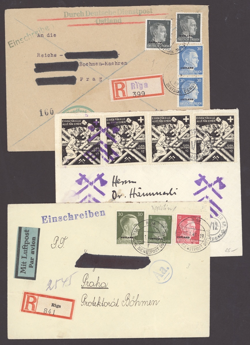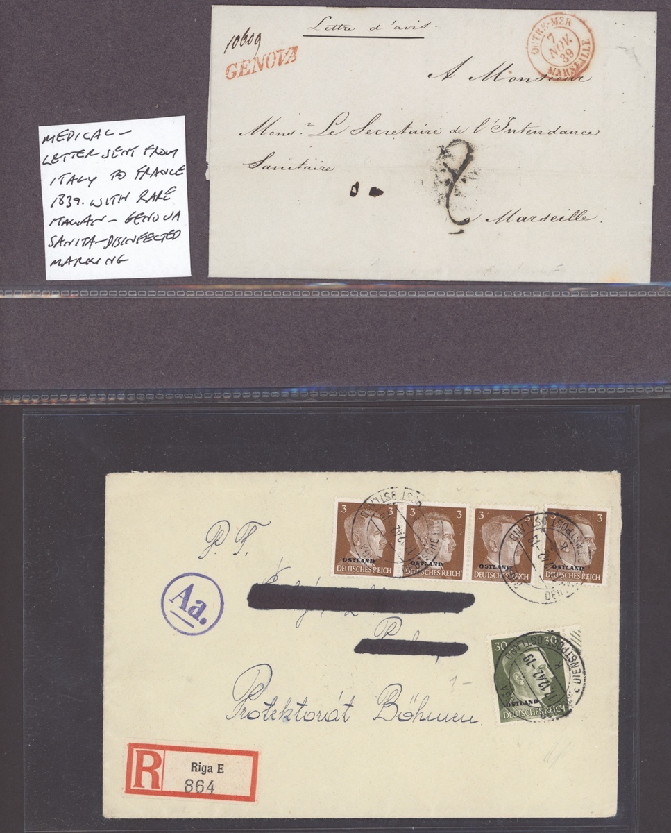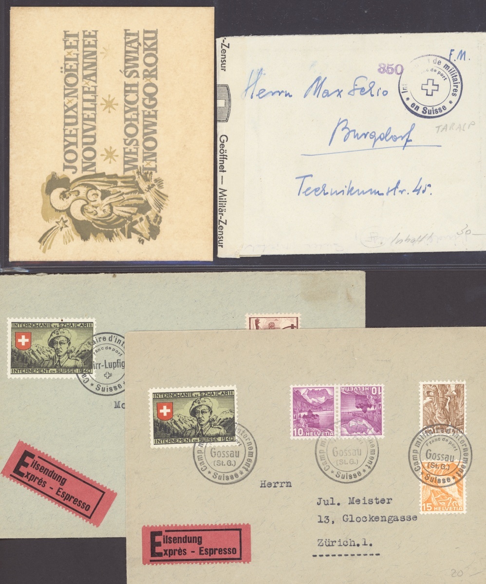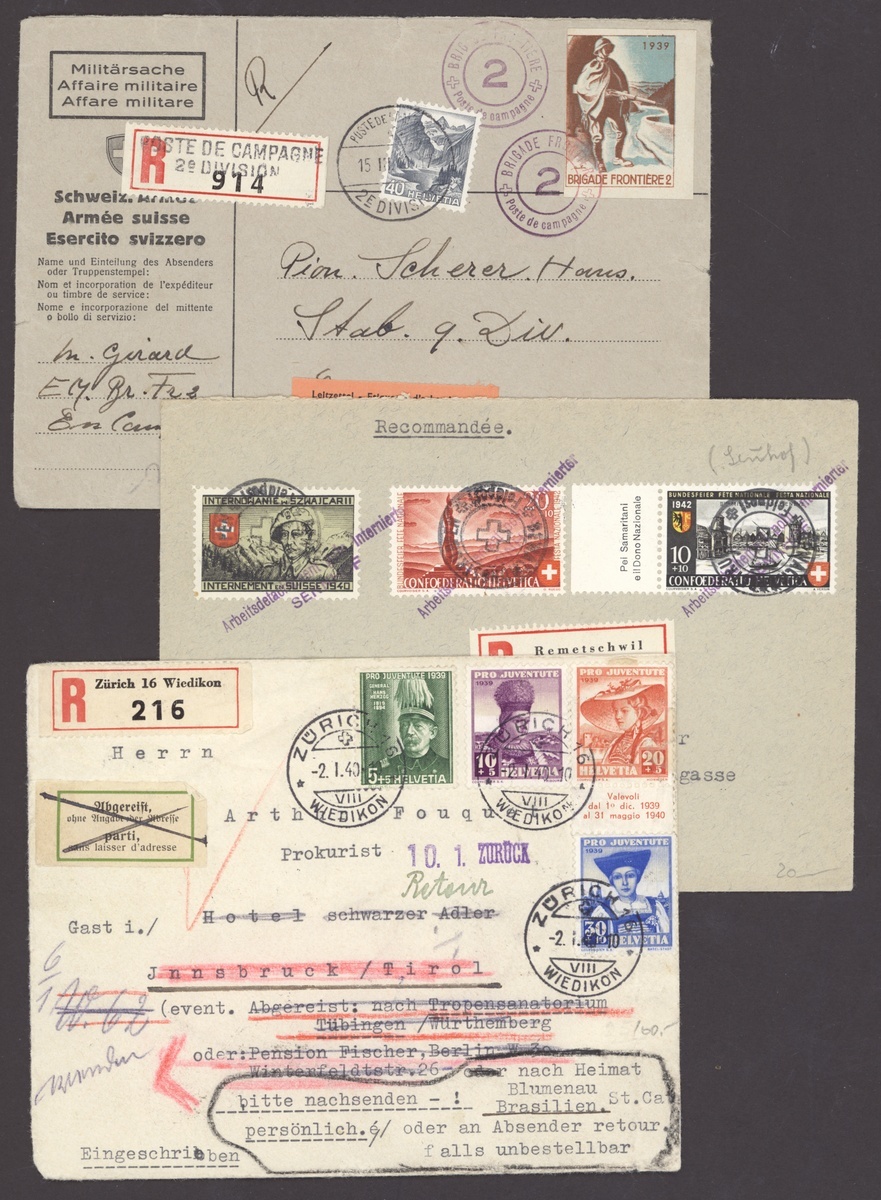 Postal history selection (40) including Russia 1934 envelope registered air mail express to England, Lichtenstein envelope registered and censored, selection of Netherlands rocket mails plus extra loose labels, Switzerland range of internment camps cards. Mixed condition, a useful group.