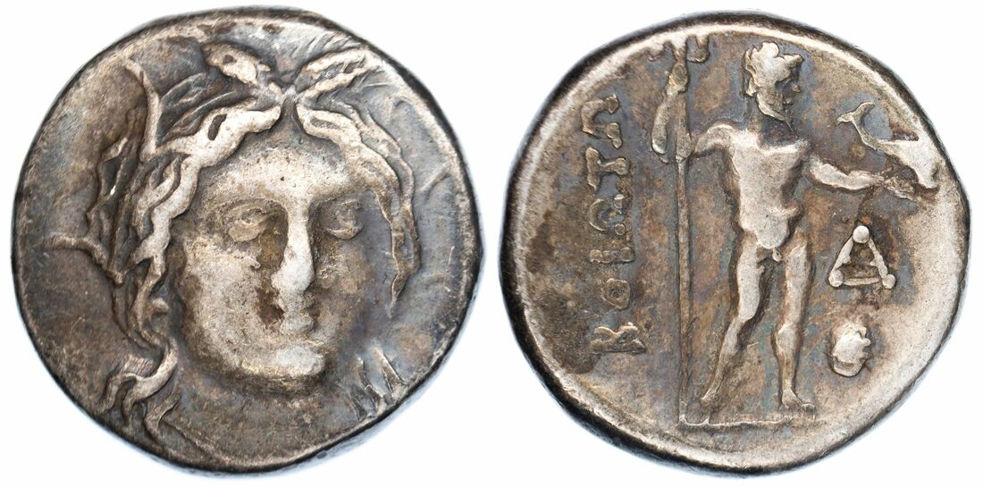 Boeotia, Thebes, Federal Coinage, c. 250 BC, AR Drachm, head of Demeter or Kore (Persephone) facing slightly to right, wearing wreath of grain-ears, rev.