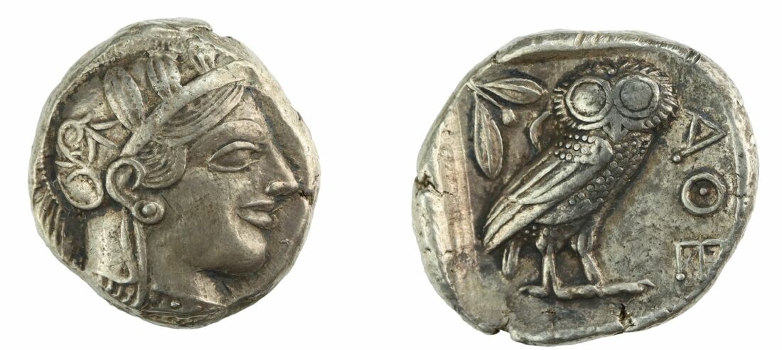 Attica, Athens, AR Tetradrachm, c. 454-404 BC, Head of Athena right, wearing crested Attic helmet ornamented with olive leaves, rev.