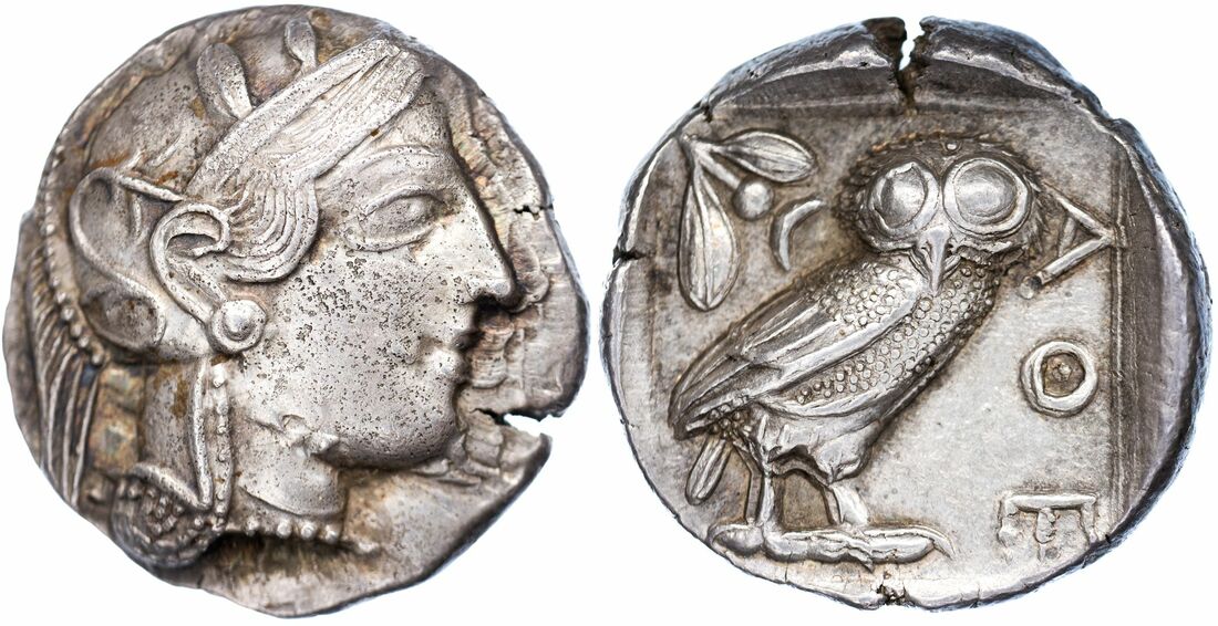 Attica, Athens, AR Tetradrachm, c. 454-404 BC, head of Athena right, wearing crested Attic helmet, rev.