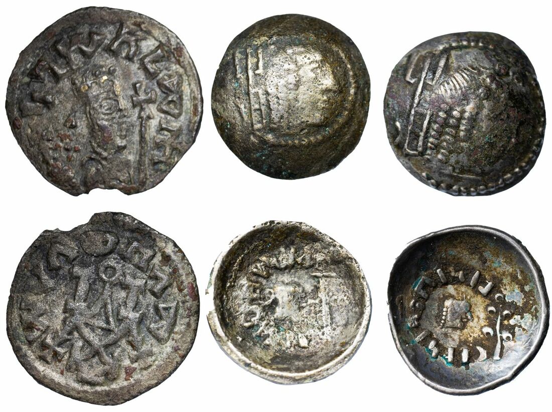 Arabia Felix, Himyarites, 'Amdan Bayyin (c.50-150 AD), AR Quinarius (2), 1.30g, 1.72g, both on scyphate flans, with male head right, trident standard behind head, rev. smaller head right with standard before, Sabaean inscription around (MAC 373; SNG ANS 1602-1609; Munro-Hay, Arabia Felix, 165 type 3.4i), about fine / good fine; Kingdom of Axum, Armah (Alla Amidas) (c.540-60), billon & gilt Unit, 1.00g, crowned and draped bust to right, holding cross on staff, wheat stalk ending in cross to left, gold gilding on crown, Ge'ez legend "King Armah" around, rev. arch surmounted by cross, flanked by two long crosses, symbol beneath arch, Ge'ez legend "mercy and peace" around (H 71; AC 151), edge nick, very fine and scarce (3)