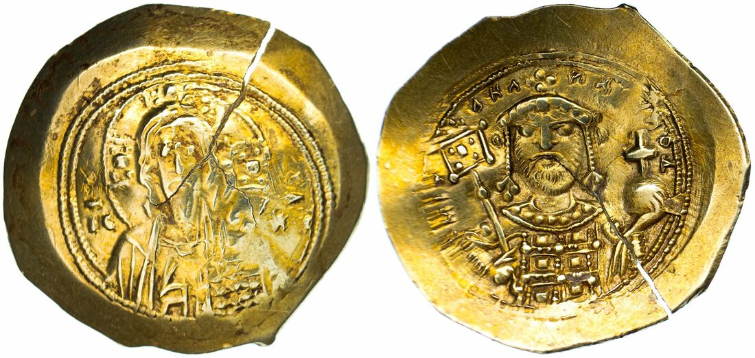Byzantine Empire, Michael VII Ducas (1071-1078), EL Histamenon Nomisma, facing bust of Christ Pantokrator, IC-XC across fields, pellet to left and right, rev. + MIXAIL BACIL O D, facing bust of Michael, holding labarum and globus cruciger, 4.33g (SB 1868), split to flan unforuntately glued, wear to edges, otherwise about fine