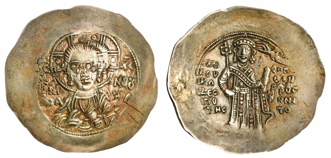 Byzantine Empire, Manuel I Comnenus (1143-1180) EL Nomisma, bust of Christ, beardless and facing, rev. Manuel standing, facing, holding labarum and mappa, 4.32g (BMC 14), double strike on the obverse, marvellously detailed, extremely fine, an unusual type