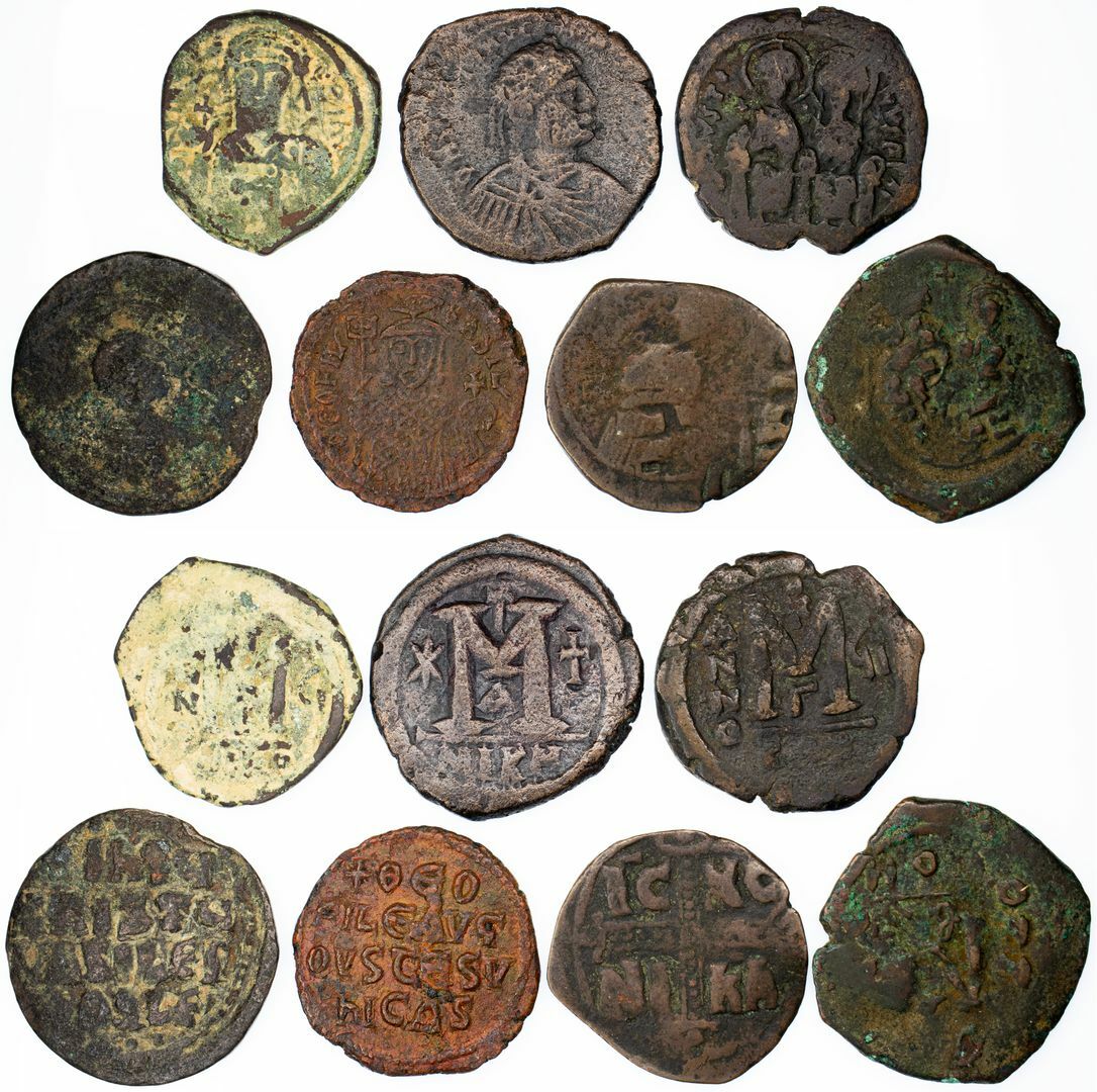 Byzantine Empire, a Selection of Bronze (7): i) Justinian, 40 Nummia/follis, Nikomedia, 16.40g (BMC 183), 16.40g; ii) Justin II and Sofia, Follis 6th year of reign, Constantinople, couple enthroned facing, 14.39g; iii) Maurice, 40 Nummia, Nikomedia, dated AD 538, 11.02g; iv) Heraclius with Constantine, 10.30g ; v) Theophilus Emperor facing, rev. four line legend, 7.85g (SB 1667) ; vi) Theodora (1055-1056) anon Follis overstruck on Michael IV, 6.30g; vii) anon. follis John I(?) 'King of those who rule', 11.24g; ranging from fair to good fine; (7)